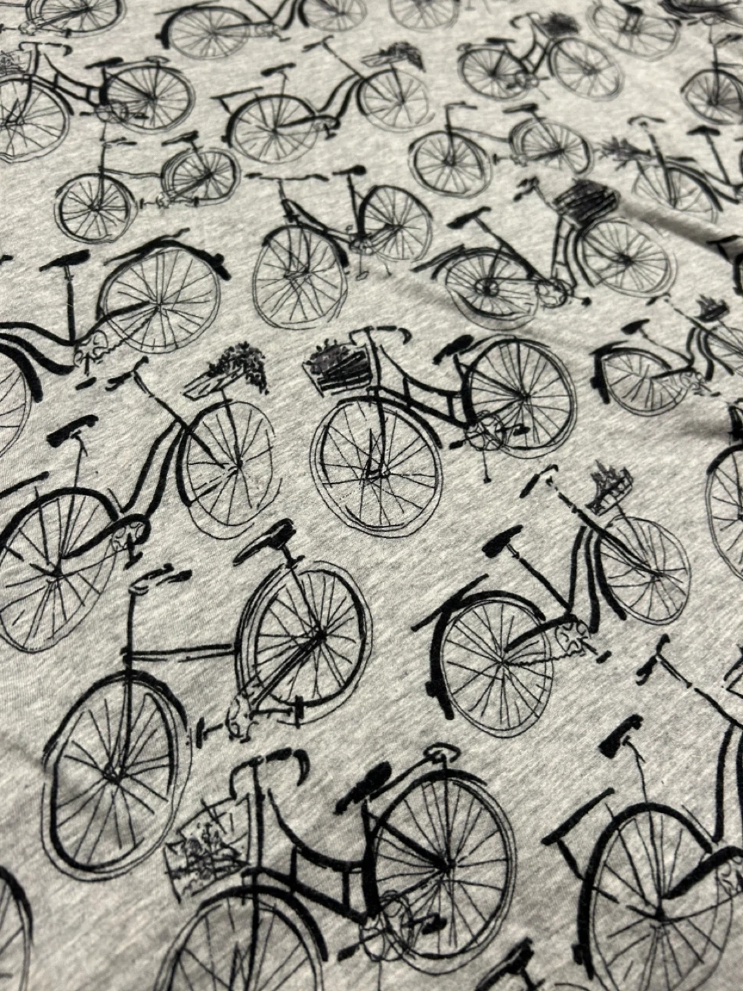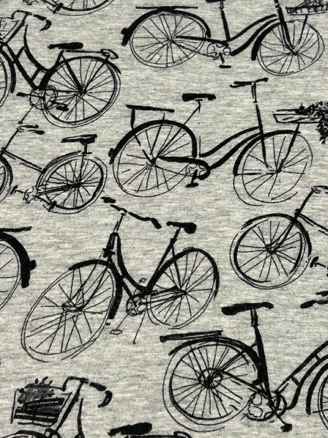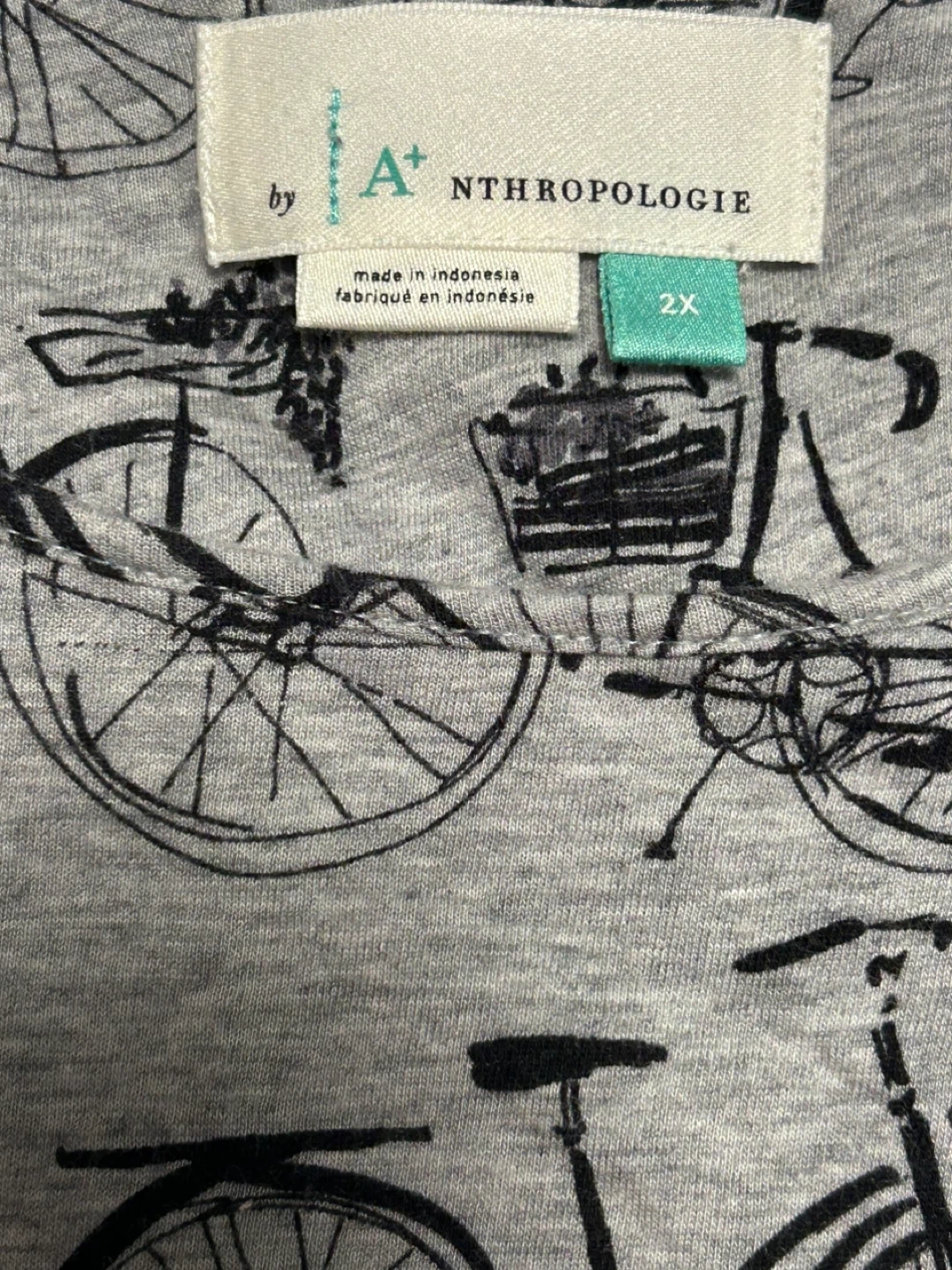 Anthropologie grey t-shirt with a black bicycle print. It's made of 60% cotton and 40% modal. Size is 2X.
