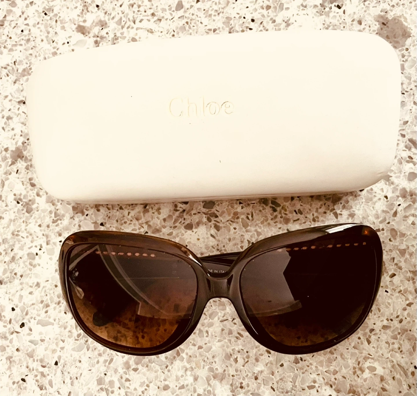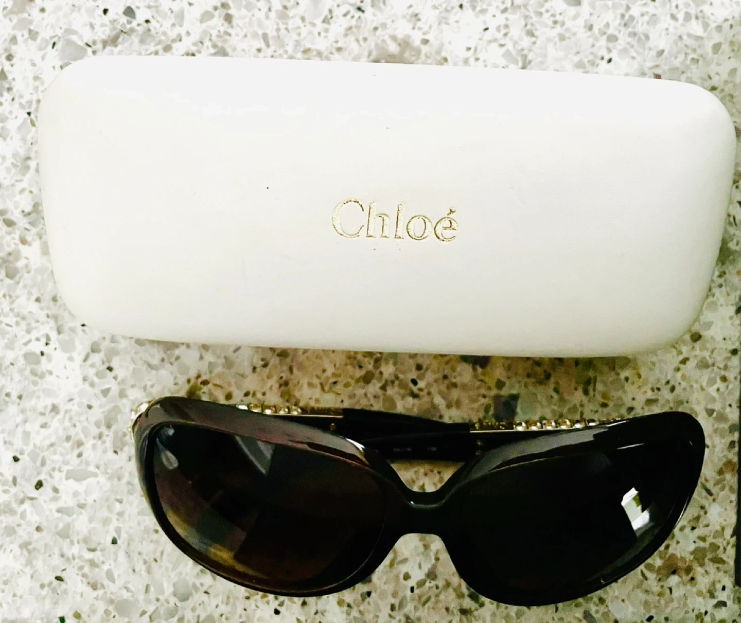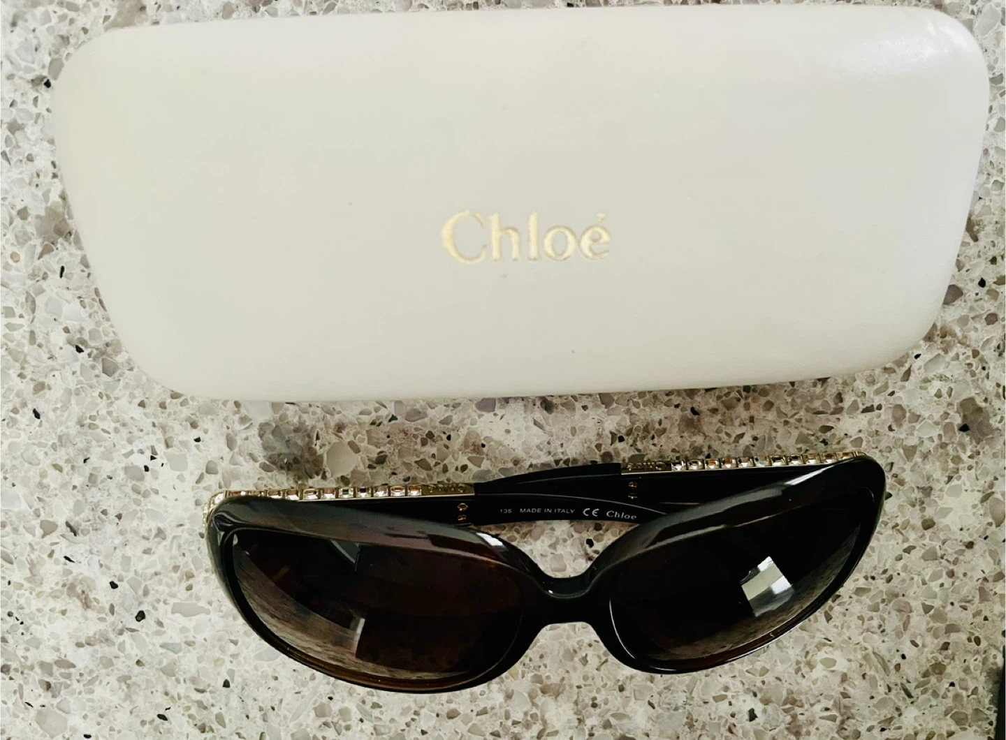 Brown Chloé women sunglasses. Crystal embellishments on the arms. Includes original case.