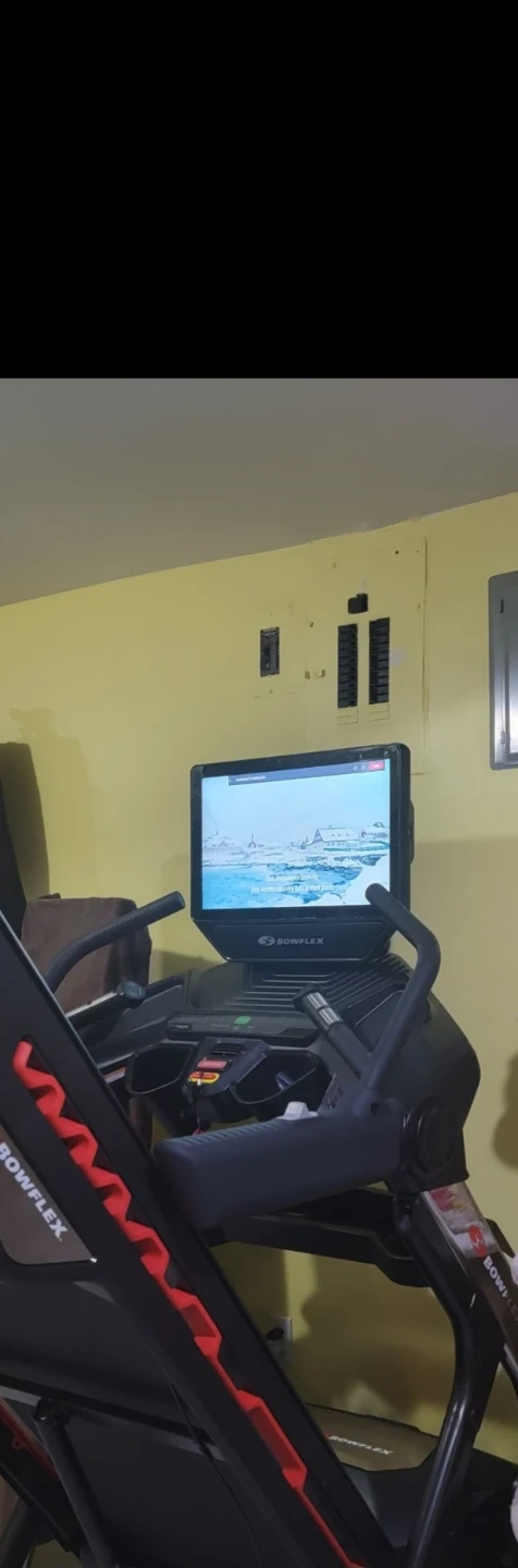 Bowflex treadmill with a built-in screen. This treadmill offers a variety of workout programs. It's great for home cardio workouts.