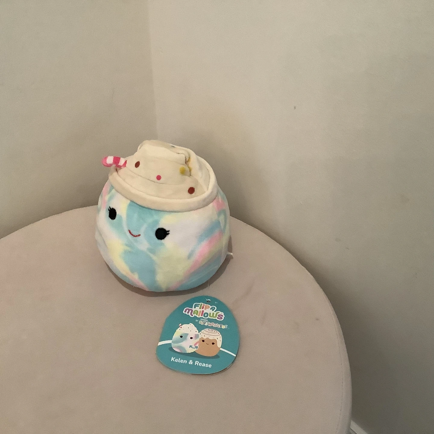 This Squishmallow plush features Kelen & Reese, a cute 2-in-1 flip design. One side is a colourful drink, and the other is a sweet treat! It's super soft and huggable. A fun plush for kids! Great for collecting!