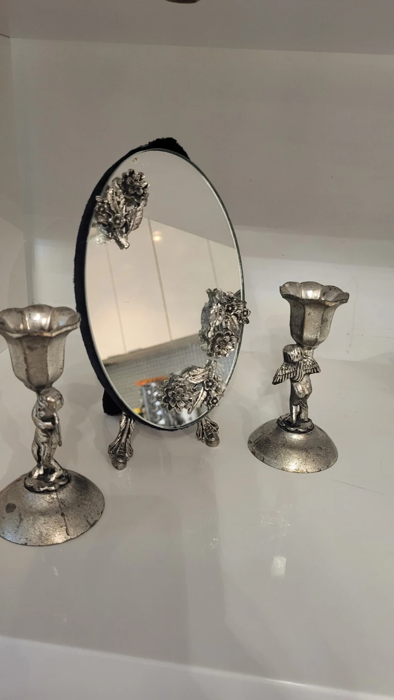 Vintage Cherub Candlestick Holder with a beautiful mirror