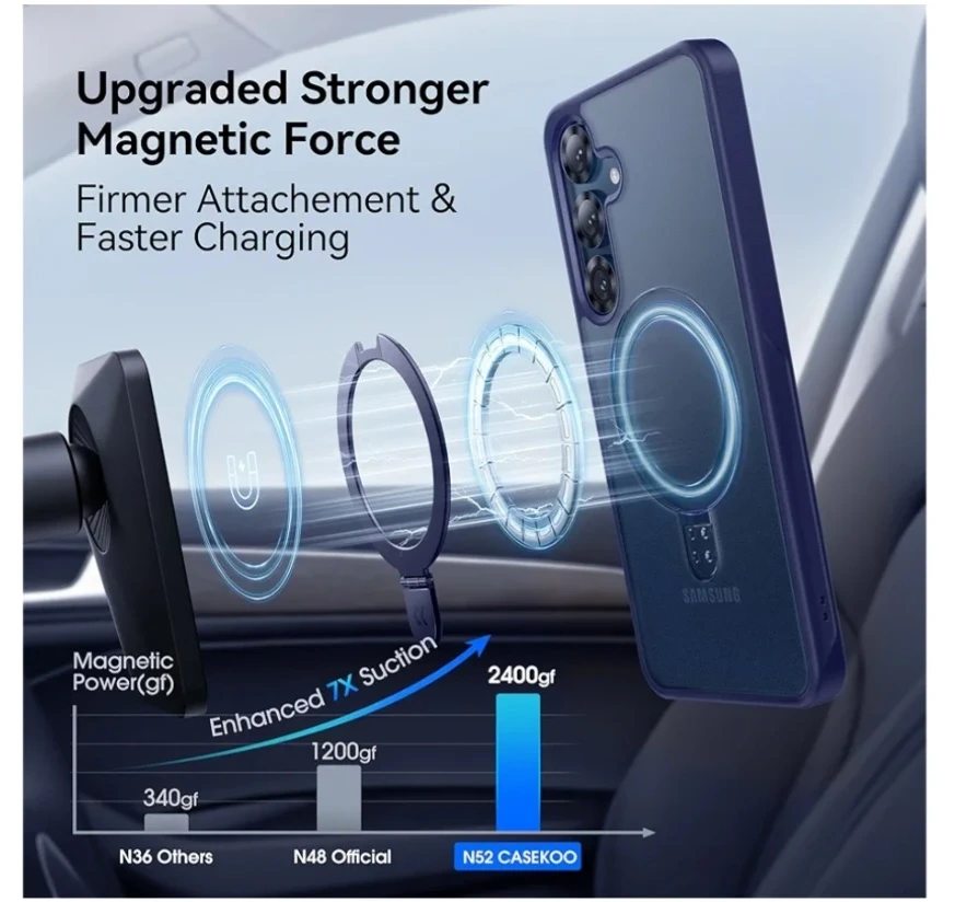 Selling a CASEKOO phone case for the Samsung Galaxy S23 ultra. It features a magnetic ring for firmer attachment and faster charging. It also has an invisible stand and grip, as you wish
