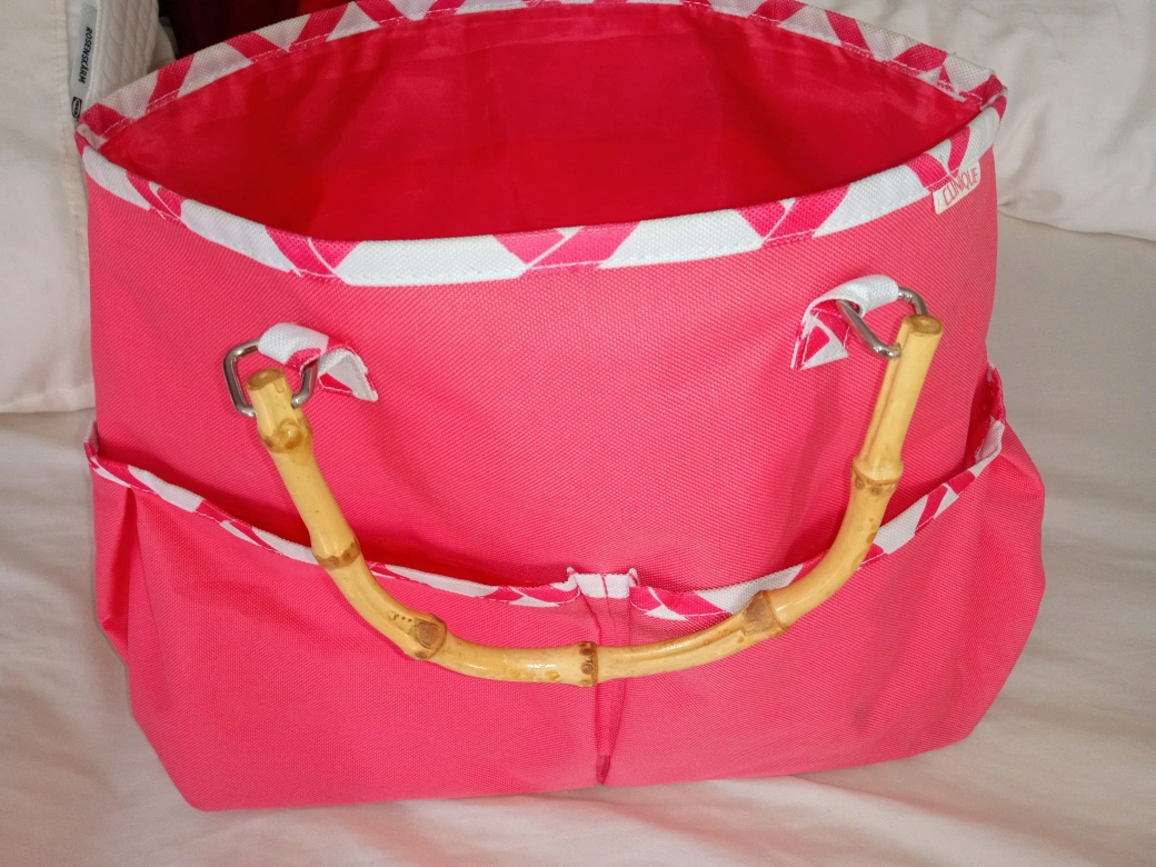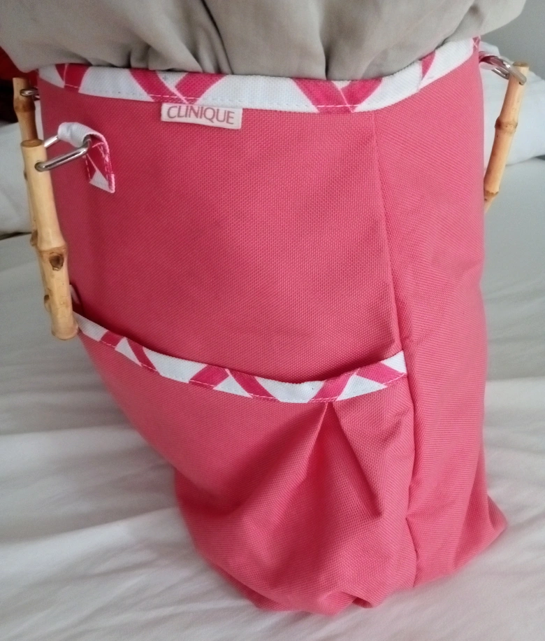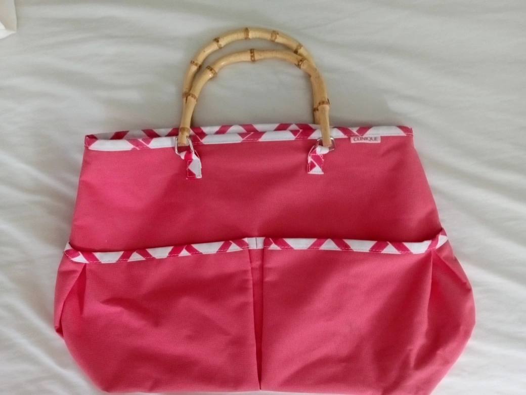 Y2K/retro Clinique, bamboo handled, beach bag/purse. Twin front pockets. Roomie. Cotton, polyester, blend. CASH ONLY! We don't carry change or travel. MeetUp between 7-7. 2600 East Broadway Vancouver Technical School.
