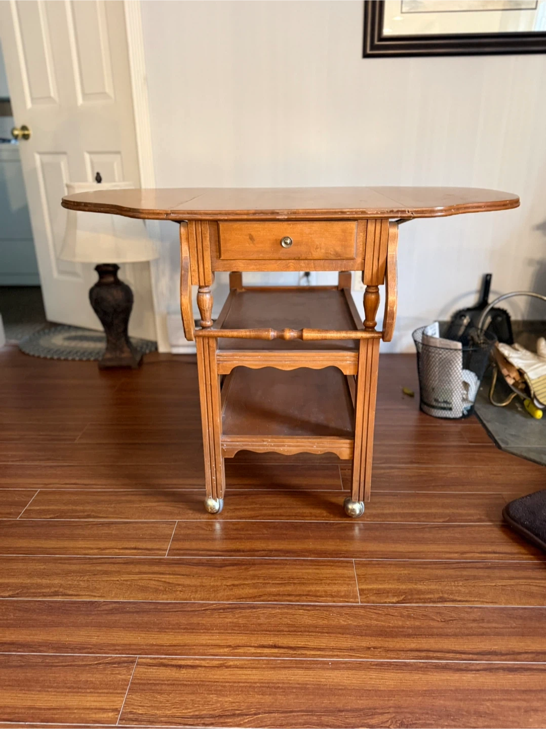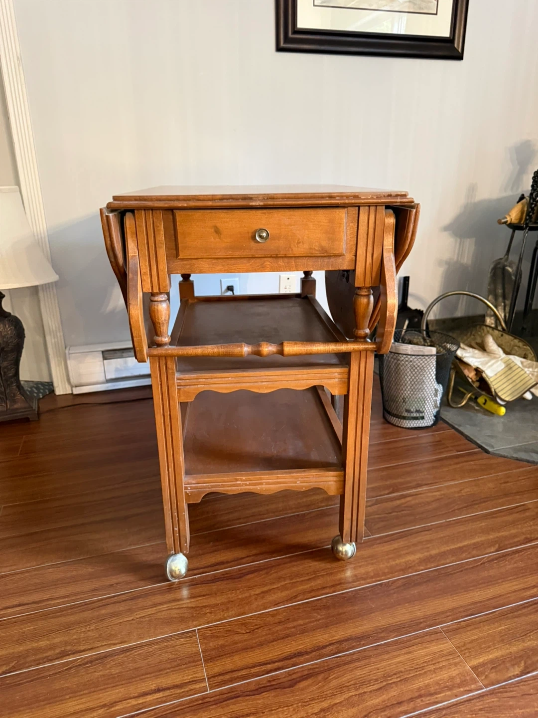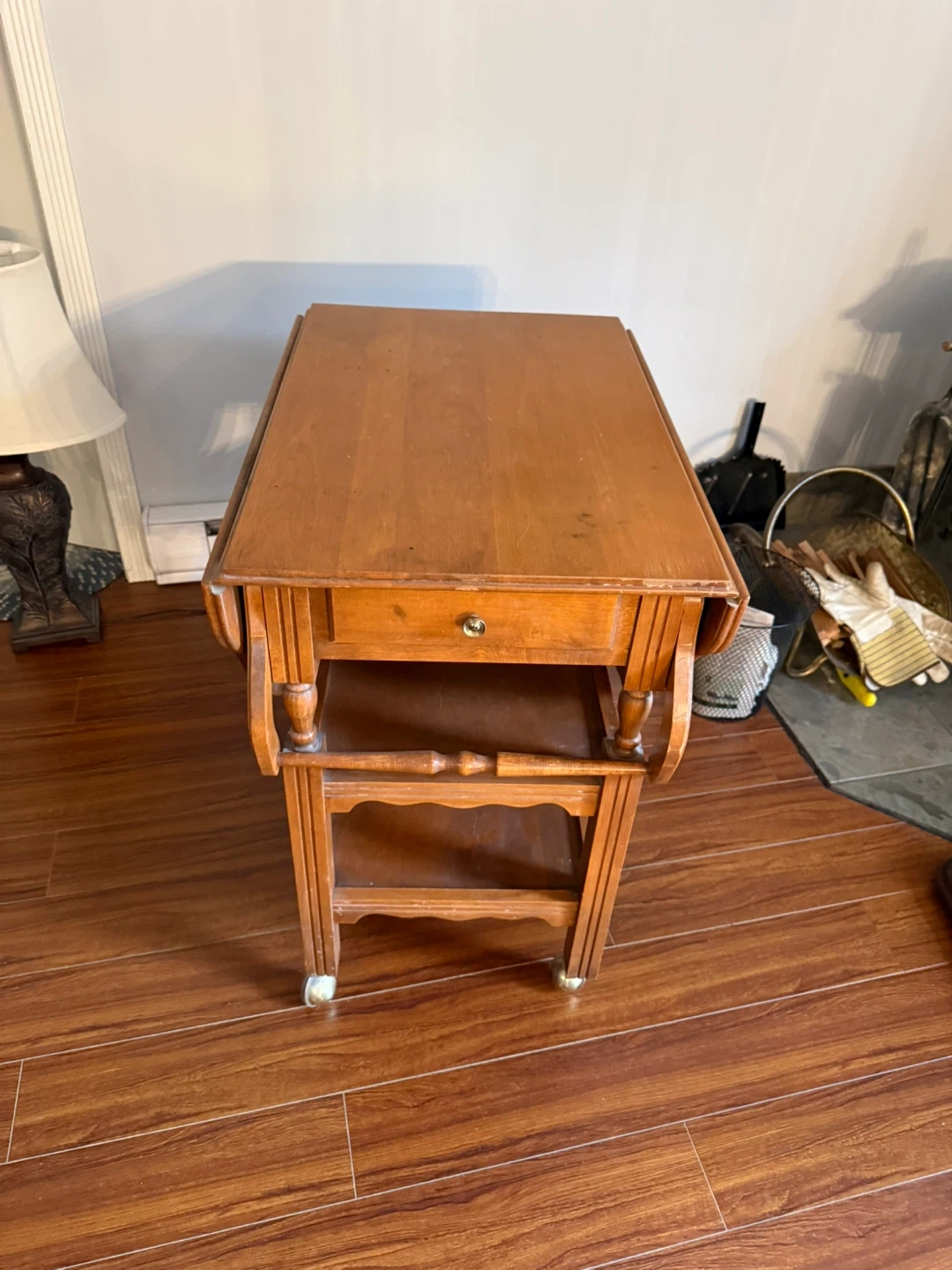 Wooden Serving Cart with Drop Leaf