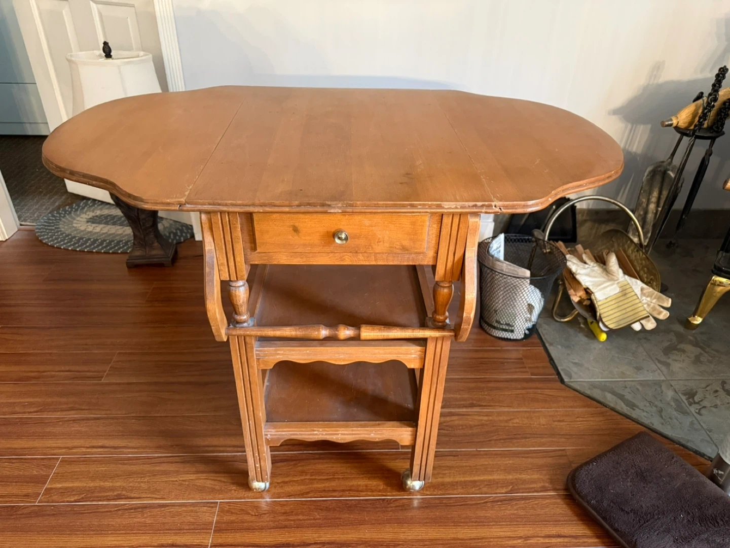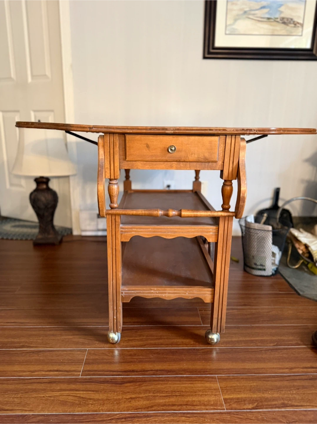 Wooden Serving Cart with Drop Leaf