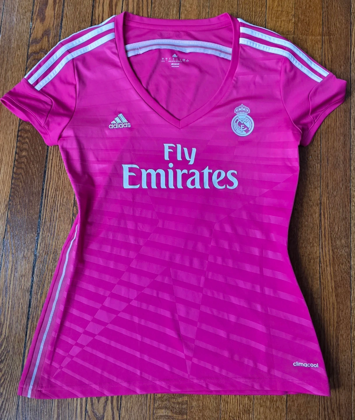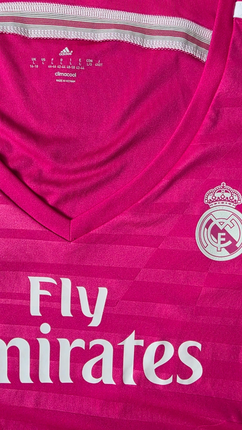 Selling an Adidas Real Madrid jersey in a vibrant pink color!