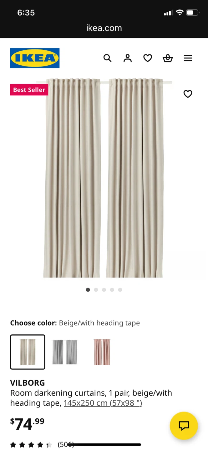 Selling a pair of IKEA Vilborg room darkening curtains in beige. They come with heading tape and measure 145x250 cm (57x98 ").