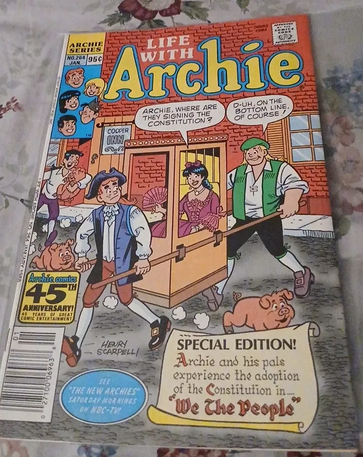 This is a special edition of Life with Archie comic book #264, published in January 1988. It features Archie and his pals experiencing the adoption of the Constitution. The cover art is by Henry Scarpell.