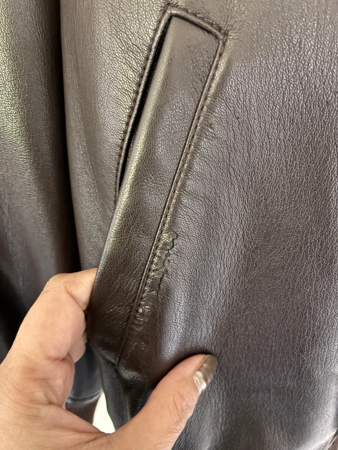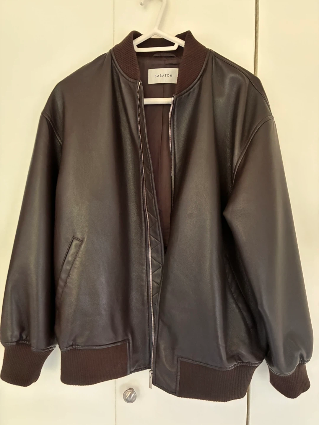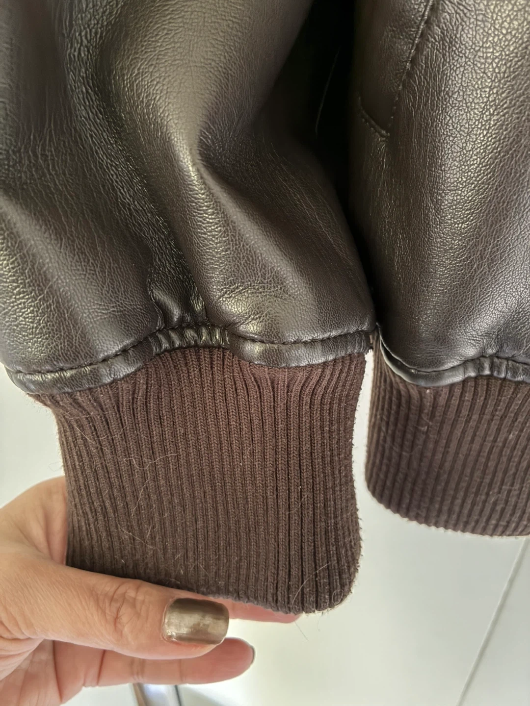Babaton Brown Faux Leather Bomber Jacket- medium