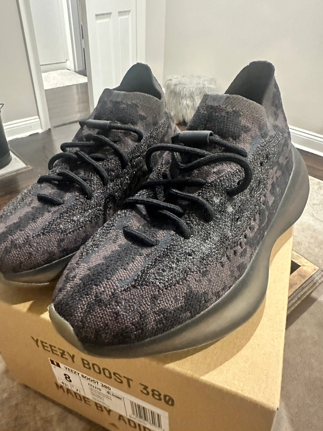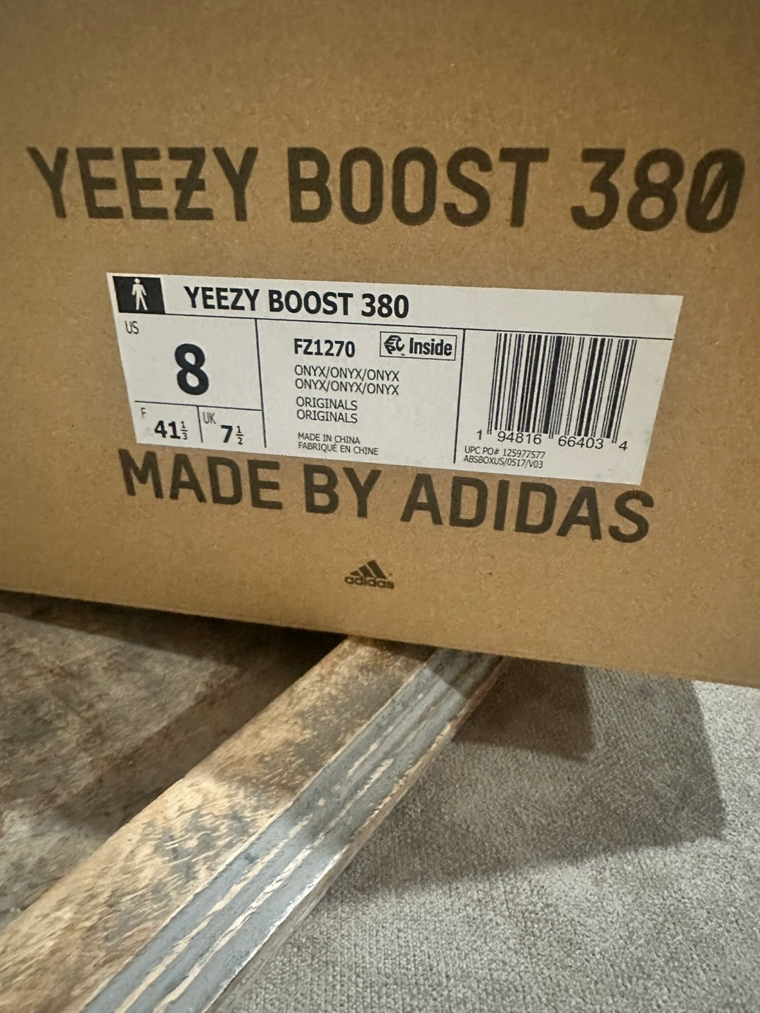 Selling a pair of Adidas Yeezy Boost 380 in the Onyx colorway, size 8 US. These are in great shape and come with the original box! Don't miss out on these stylish and comfortable sneakers