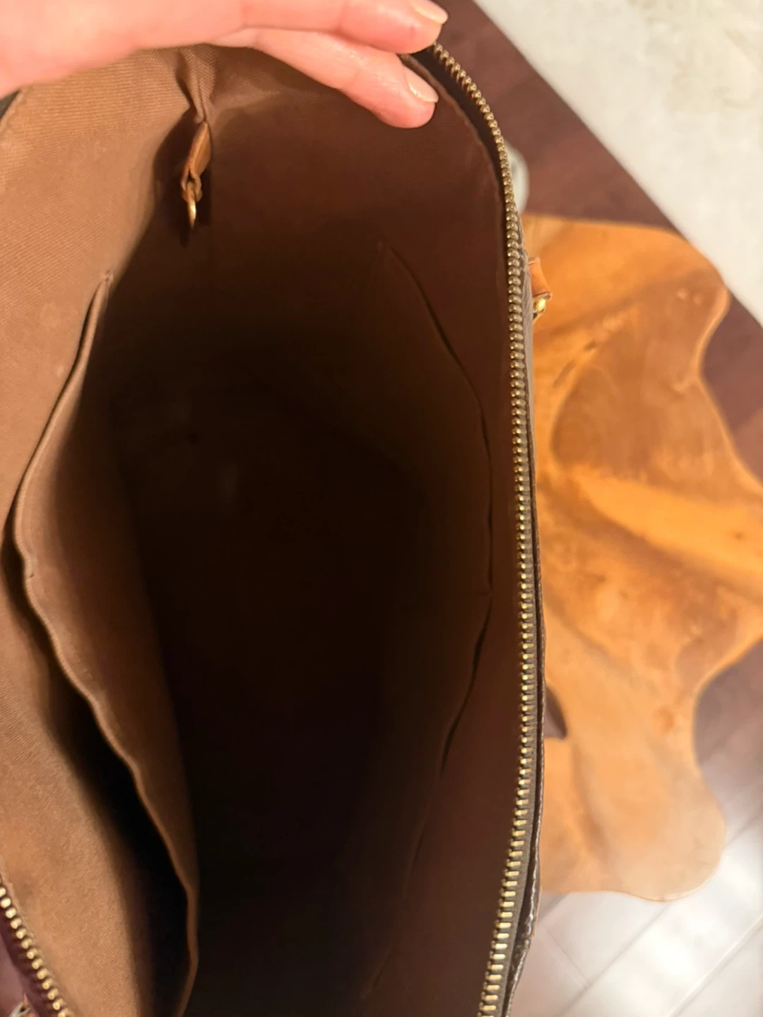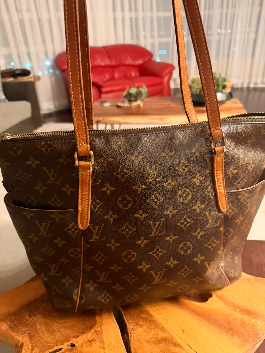 Classic Louis Vuitton tote bag in the signature monogram canvas. It's a stylish and functional everyday bag. This bag has some wear, including a tear on the side as shown in photos.