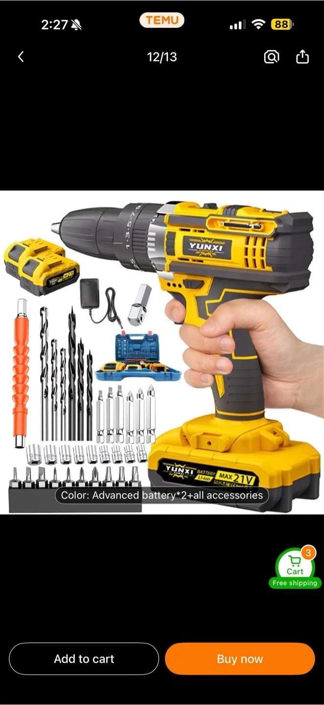 Selling a YUNXI cordless drill set in yellow. It comes with advanced battery*2 and all accessories. This drill is ready to tackle your DIY projects! Brand new!! Price negotiable!
