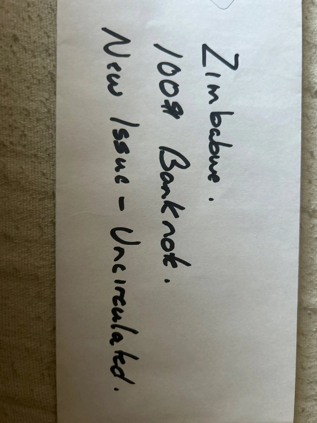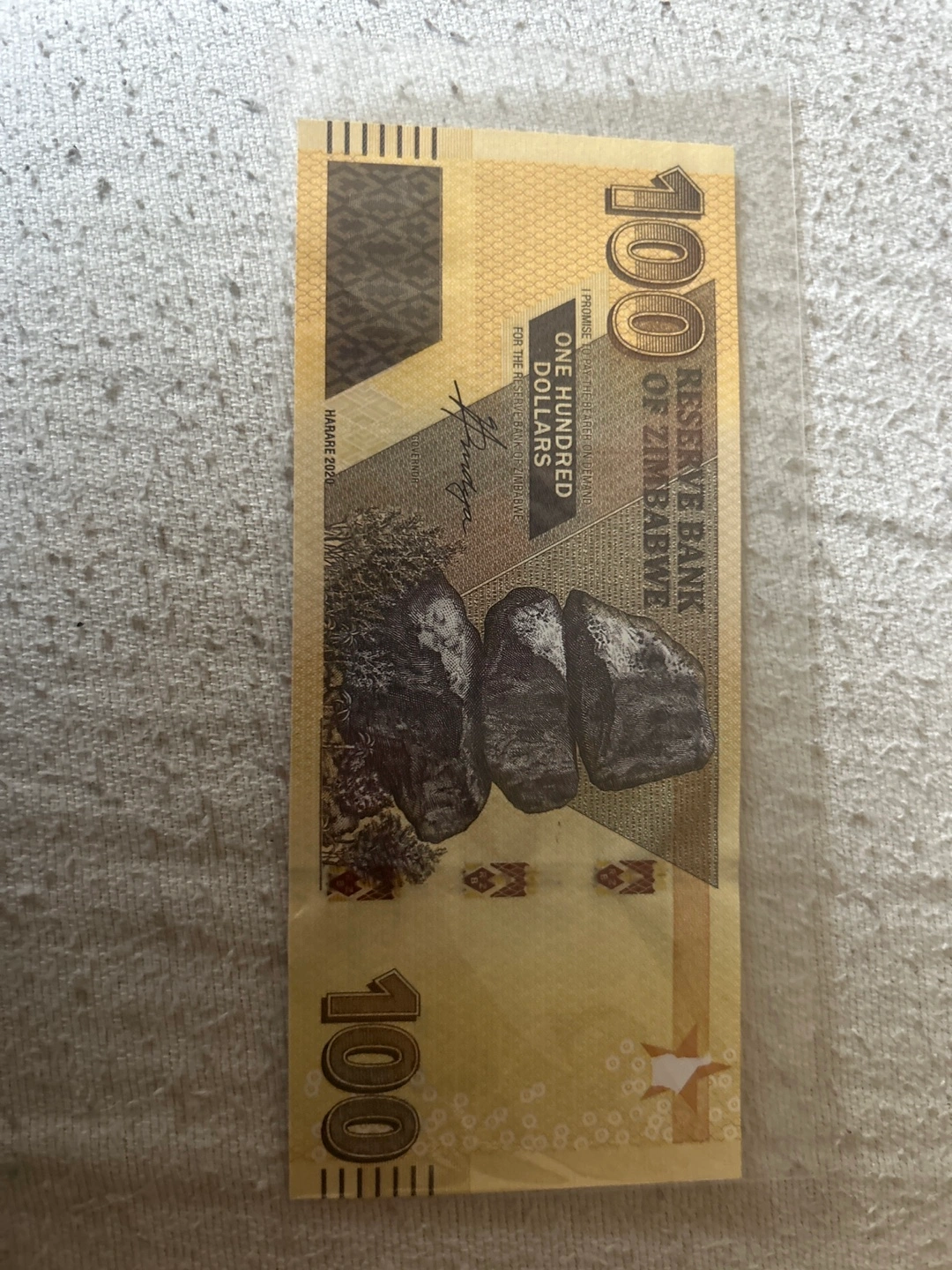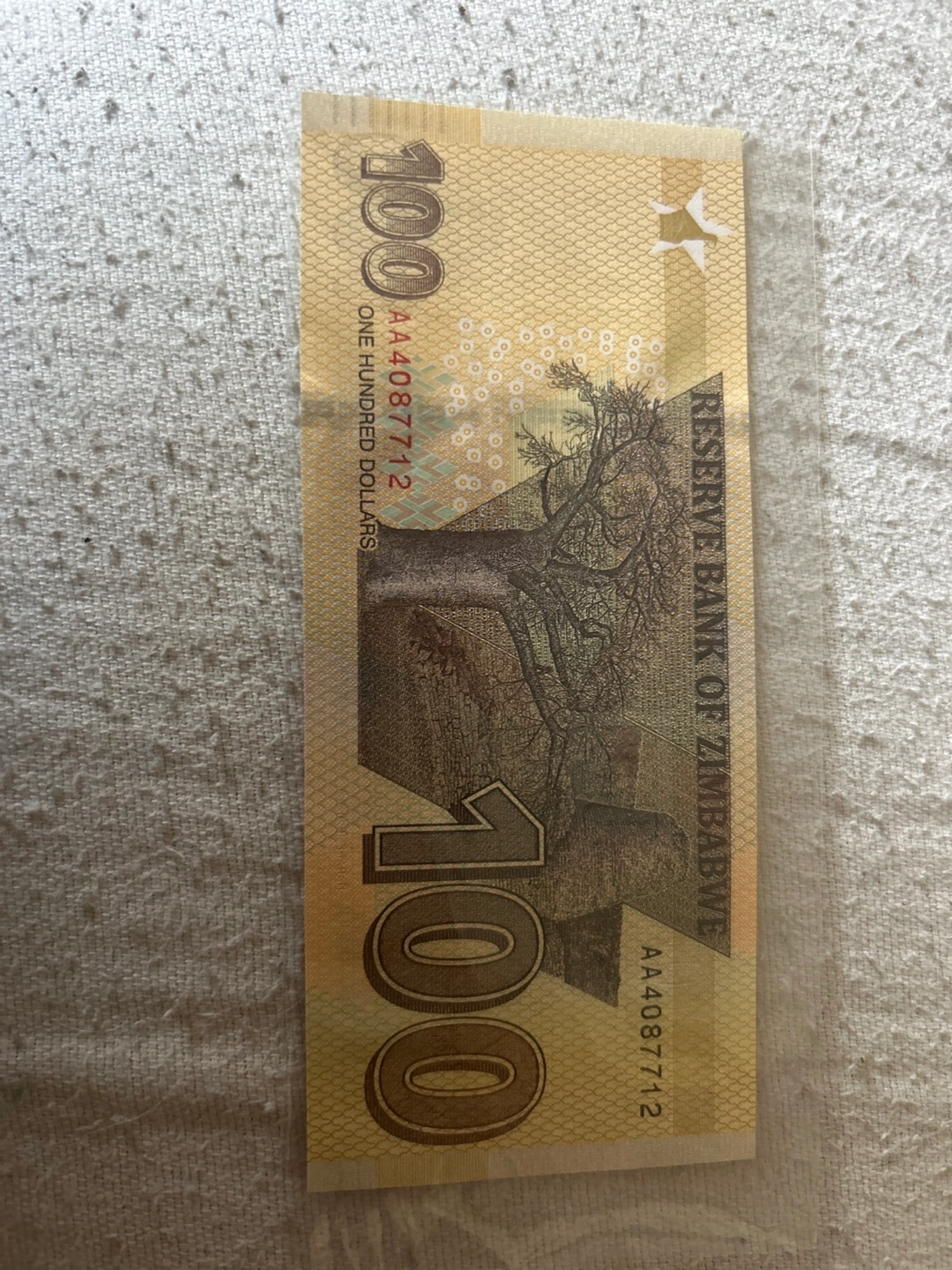 Buy & SellZimbabwe $100 Banknote - UncirculatedZimbabwe $100 Banknote - Uncirculated$10Reserve Bank of Zimbabwe $100 banknote. New issue, uncirculated. Features images of a balancing rock and a baobab tree.WHERE TO MEET22 third avenueView MapSELLERverifiedAmberOrangeville731 review0 chats·0 favorites·26 viewsSEND CHAT TO SELLERHi Amber! I’m interested in your listing.Hi Amber! I’m interested in your listing.Get the Karrot app to chatSign In to chat