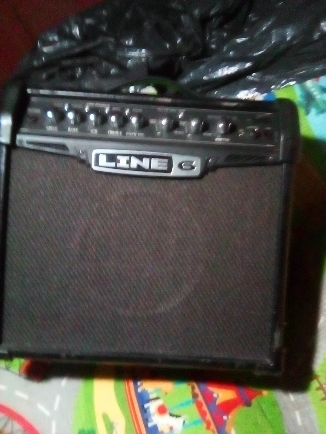 This is a Line 6 Spider IV 15 guitar amp. It has a black cabinet with a mesh speaker grille. The amp features multiple channels and tone controls on the top panel. Great for practice or small gigs!