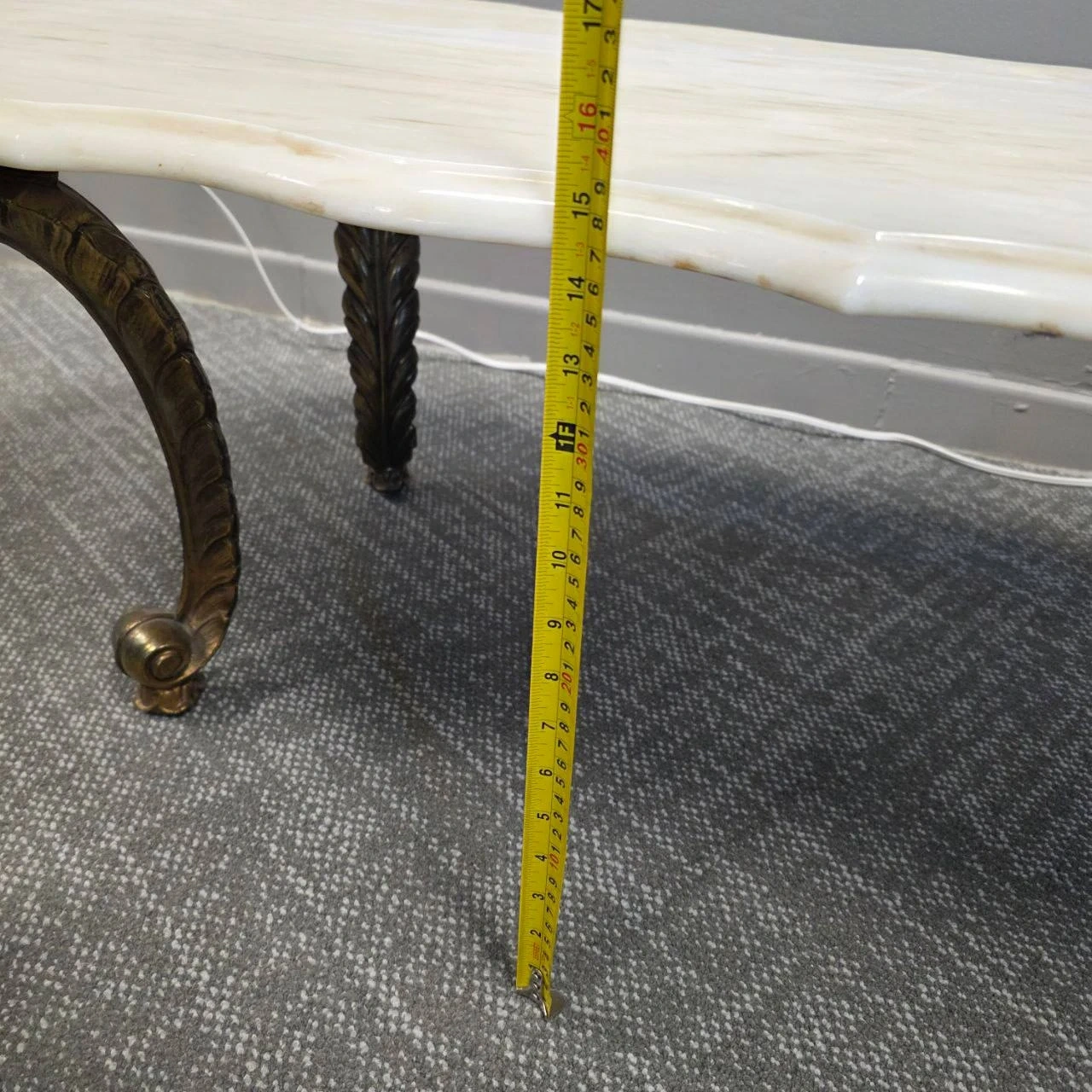 Base: Heavy, ornate brass-tone legs in classic Louis XV style.