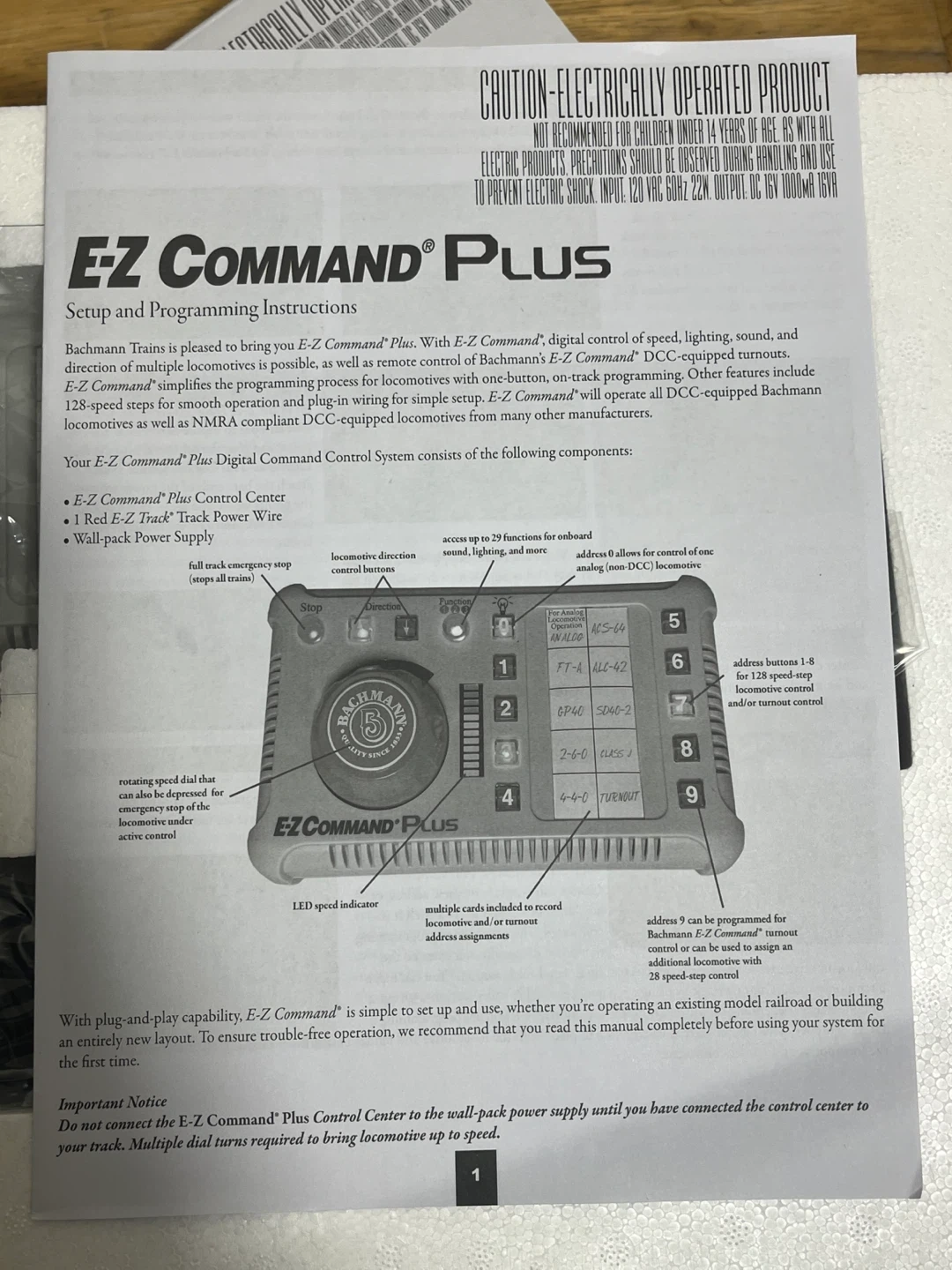 This is the Bachmann EZ Command Plus Digital Command Control System. It's designed for controlling speed, lighting, and sound for multiple locomotives. Includes control center, track power wire, and wall-pack power supply. Great for HO and On30 scale trains! $400 on Amazon