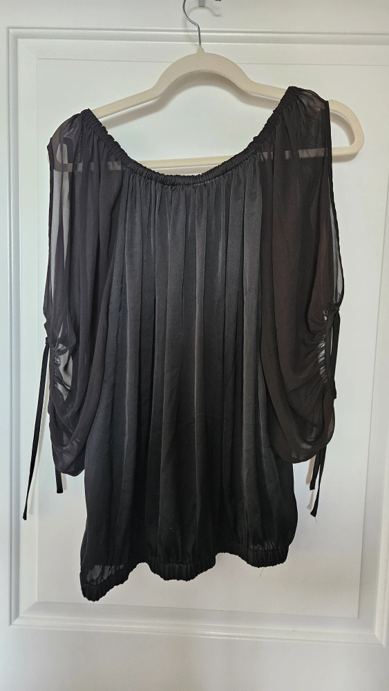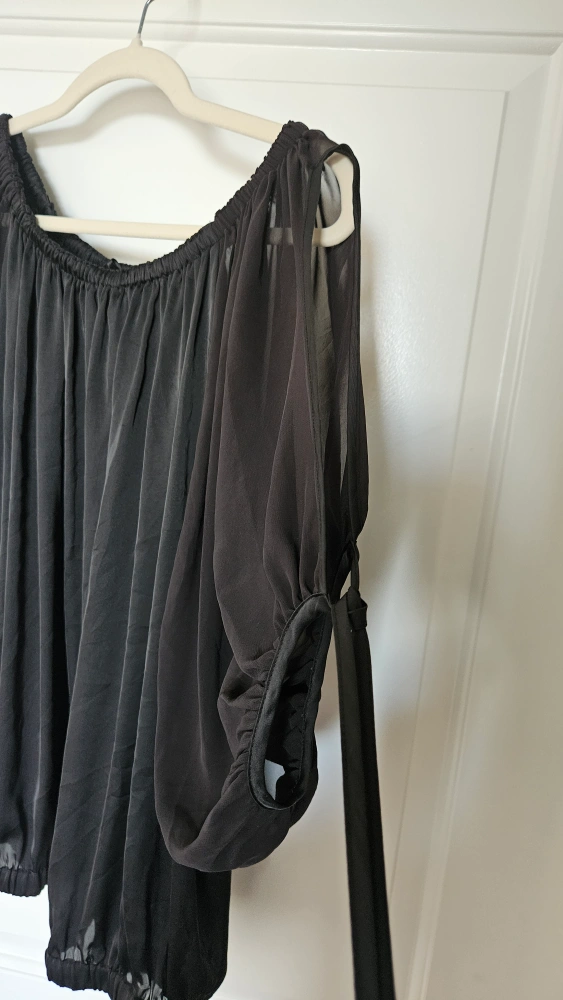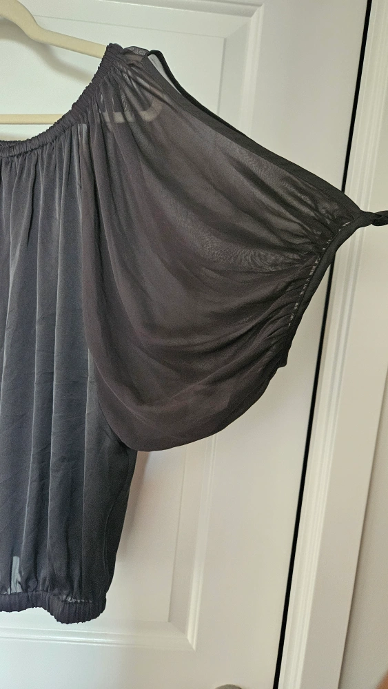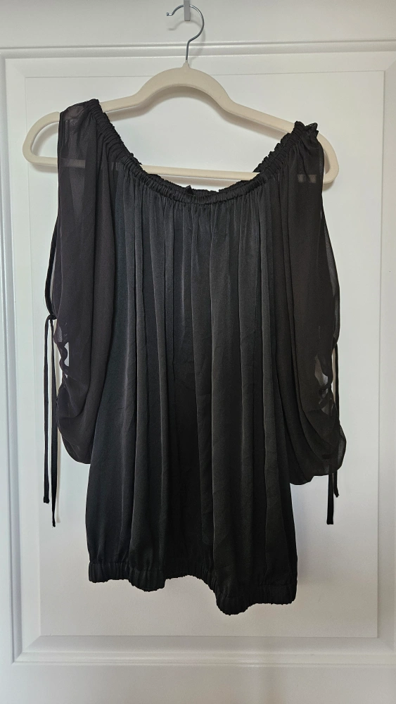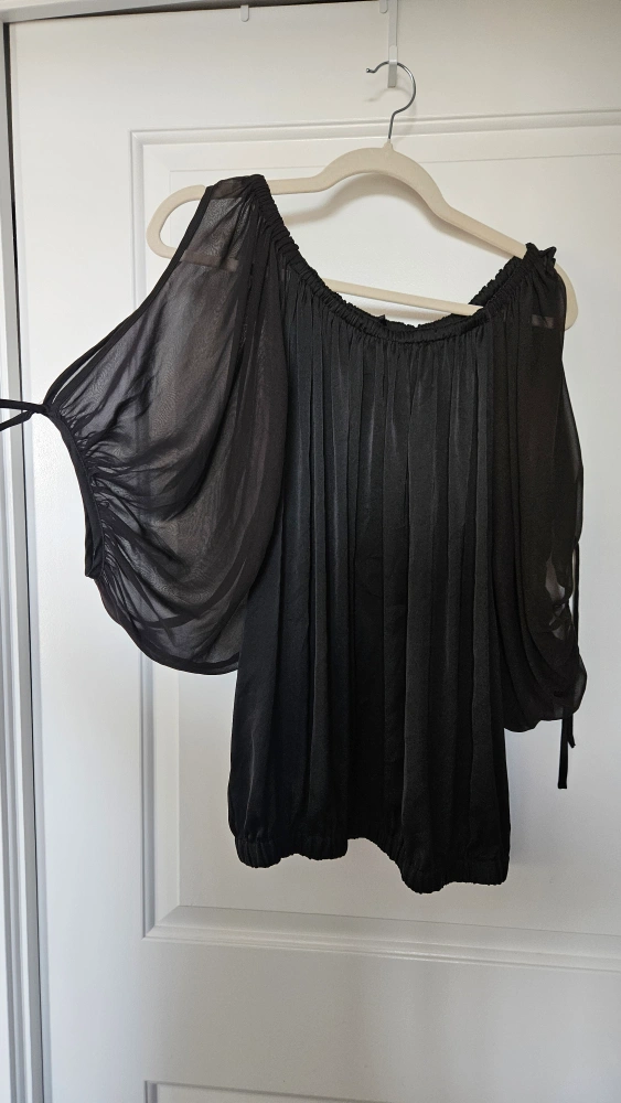 Cute black cold shoulder blouse from Next, in Size Large. Elastic waist and big flowy hands. Perfect for fall or summer, by the beach or for an evening out.