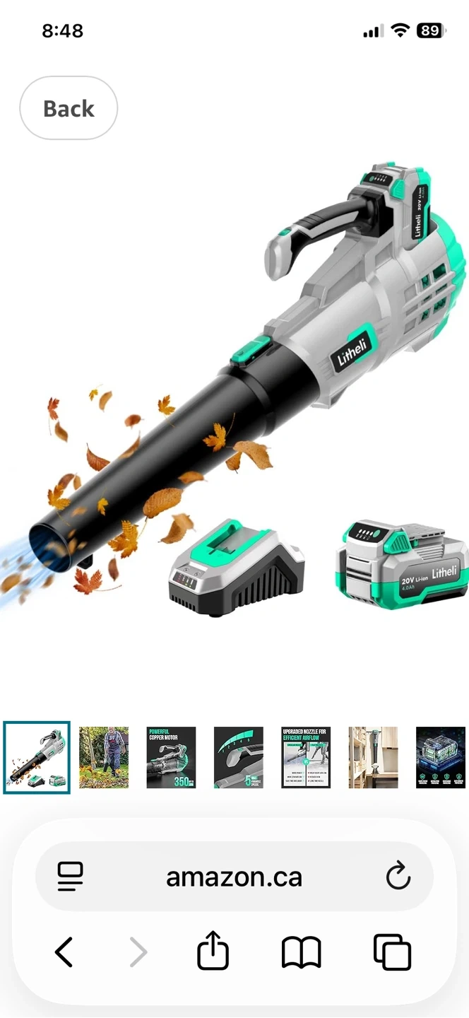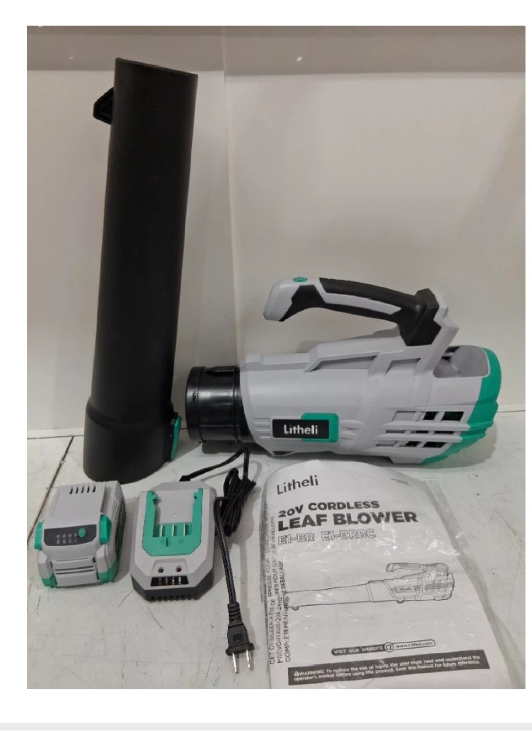 This Litheli 20V cordless leaf blower comes with a battery and charger. It features a powerful copper motor for efficient performance. The blower offers up to 350 CFM airflow. It's great for clearing leaves and debris from your yard. Brand new not in box. Retails for over 100$ plus tax