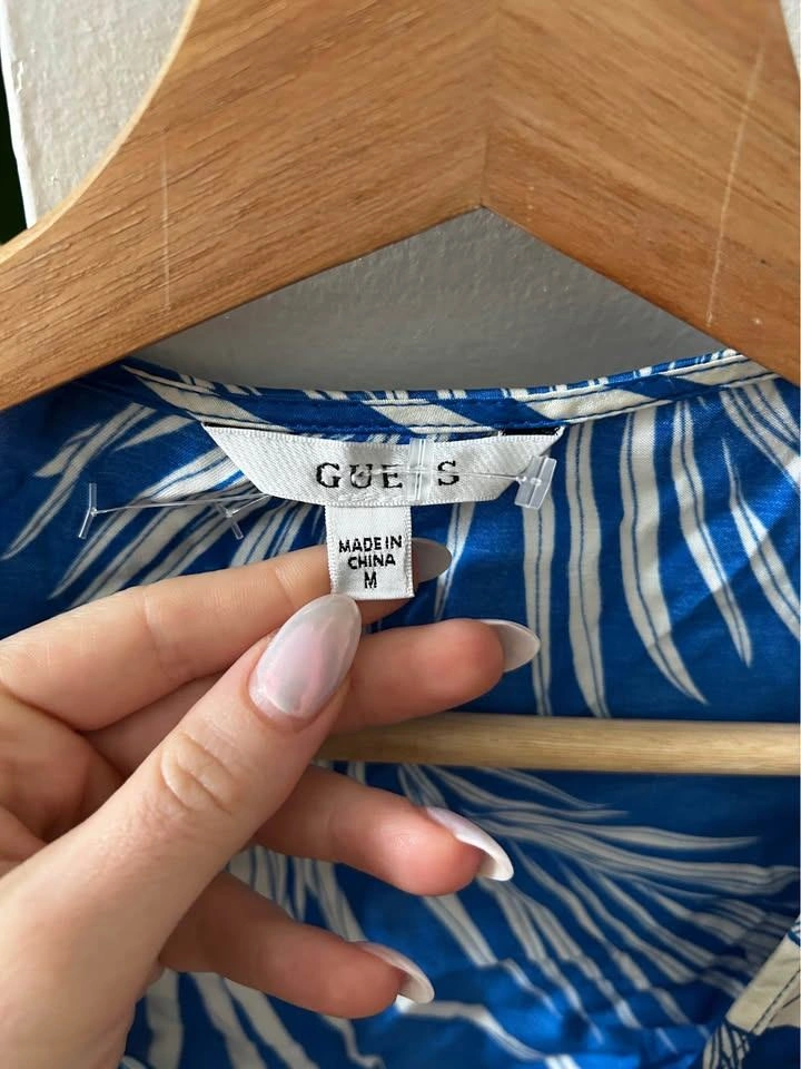 Cute Guess top with a blue and white leaf print! It's a size medium and in great condition. Perfect for summer!
