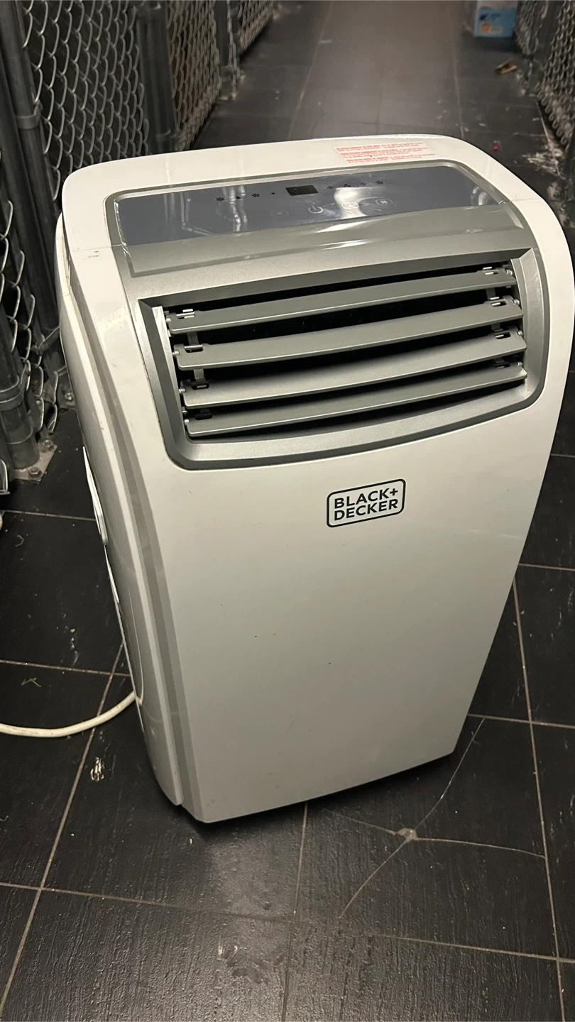 This is a portable air conditioner and heater by Black+Decker. It's white and has a digital display with control buttons on top. The unit includes vents for airflow and come with ventilation tubing. Its on wheels so it's a convenient way to cool or heat a room in your home that doesn't require a full install or hanging a unit outside your window. Only used for 1/2 a season! Must come pick up the unit in west Harlem. (No walk up necessary)