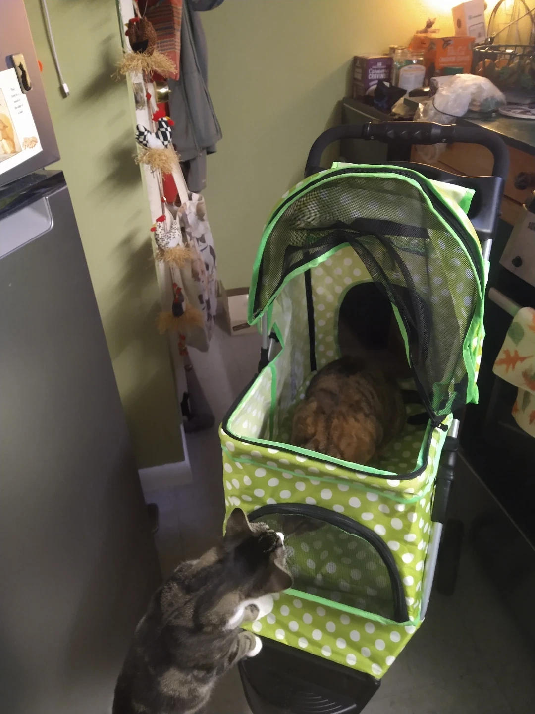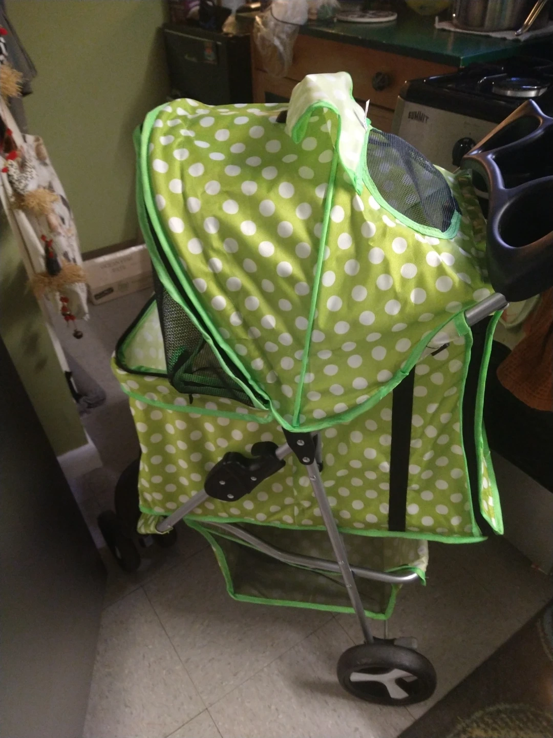 Green & White Polka Dot Pet Stroller