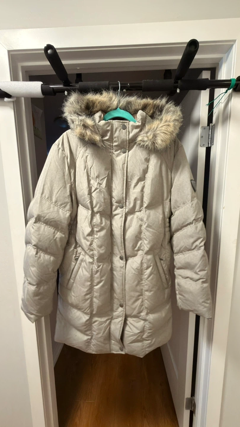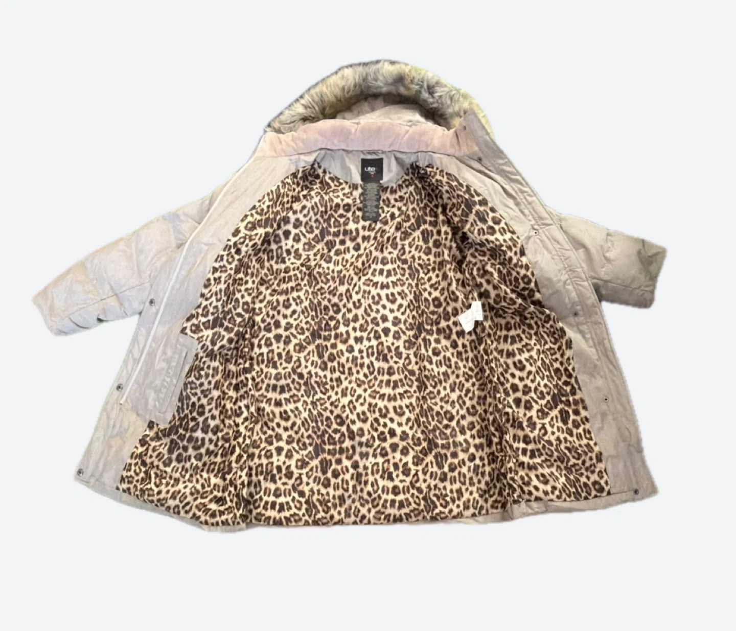 Here's a cozy utex puffer jacket perfect for the colder weather! It features a stylish faux fur hood and a unique leopard print lining. This jacket is sure to keep you warm and fashionable!