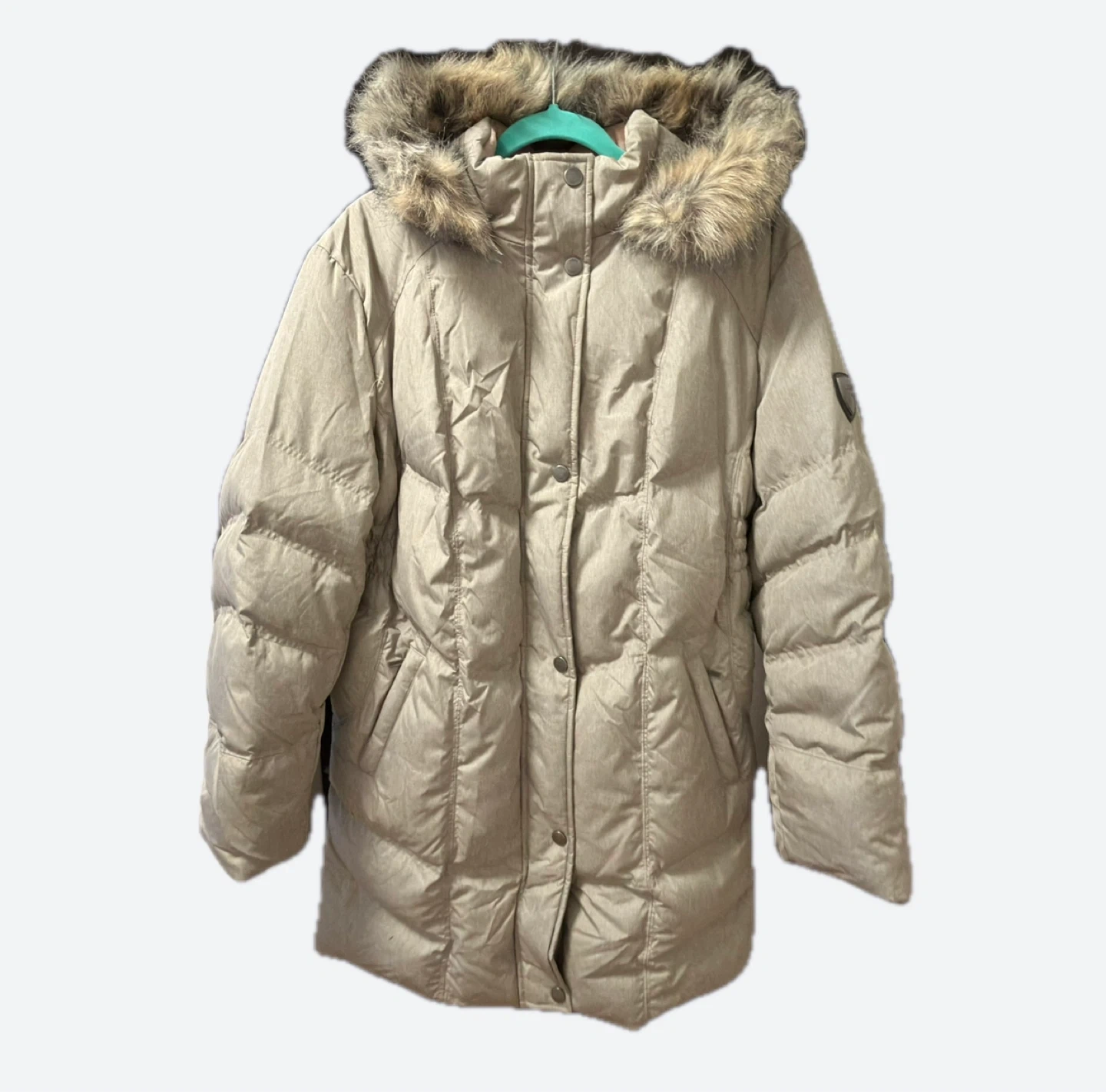Here's a cozy utex puffer jacket perfect for the colder weather! It features a stylish faux fur hood and a unique leopard print lining. This jacket is sure to keep you warm and fashionable!