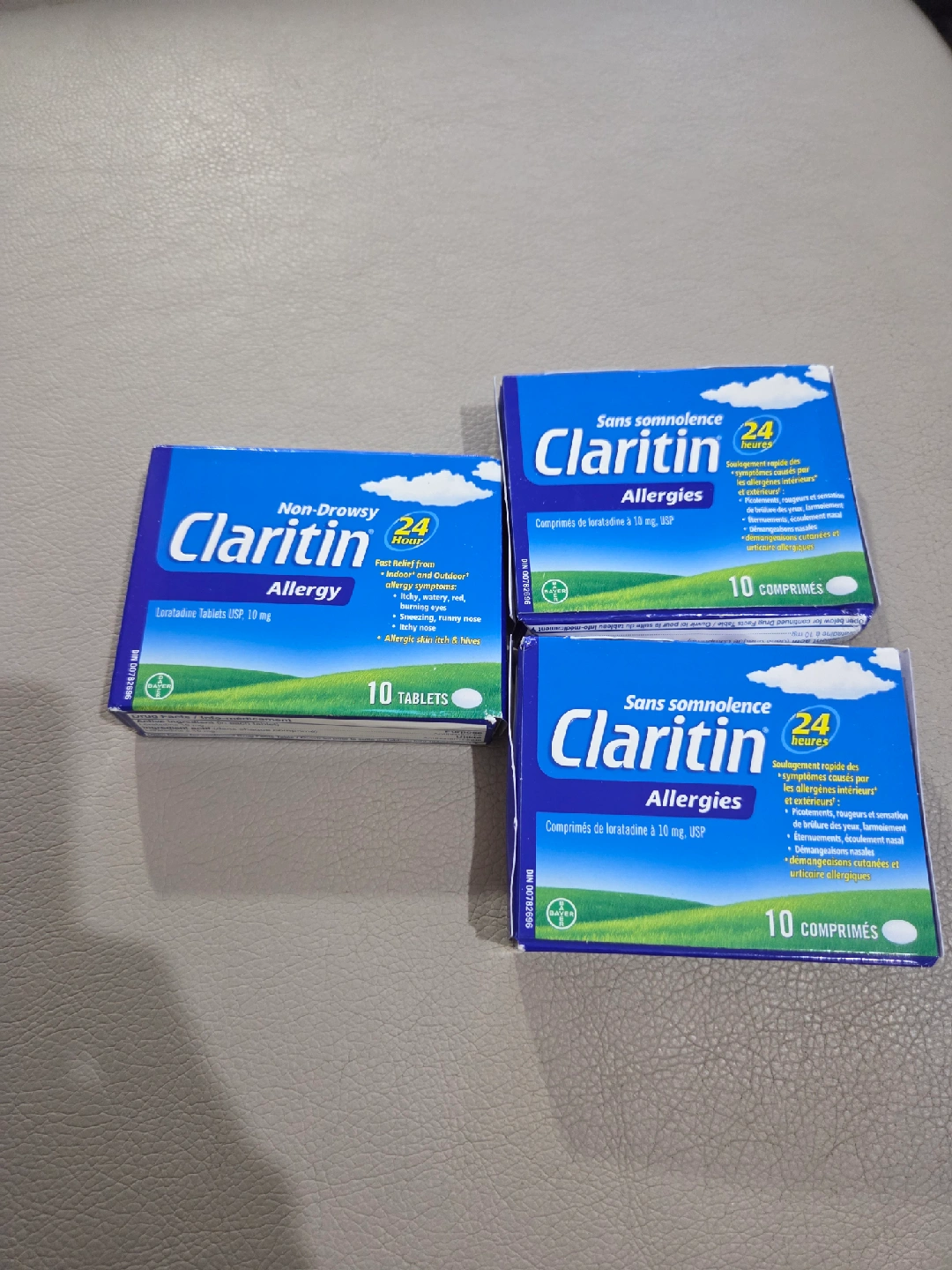 Selling Claritin allergy tablets, each containing 10mg of loratadine. Each box contains 10 tablets. Expiry date is 2028 January