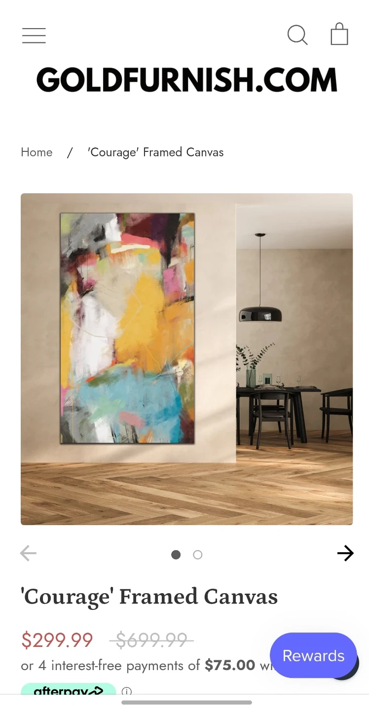 This is the 'Courage' framed PRINTED canvas art. It's 60 inches high by 40 inches wide. It features an abstract design with vibrant colours. It's perfect for adding a modern touch to your living space!