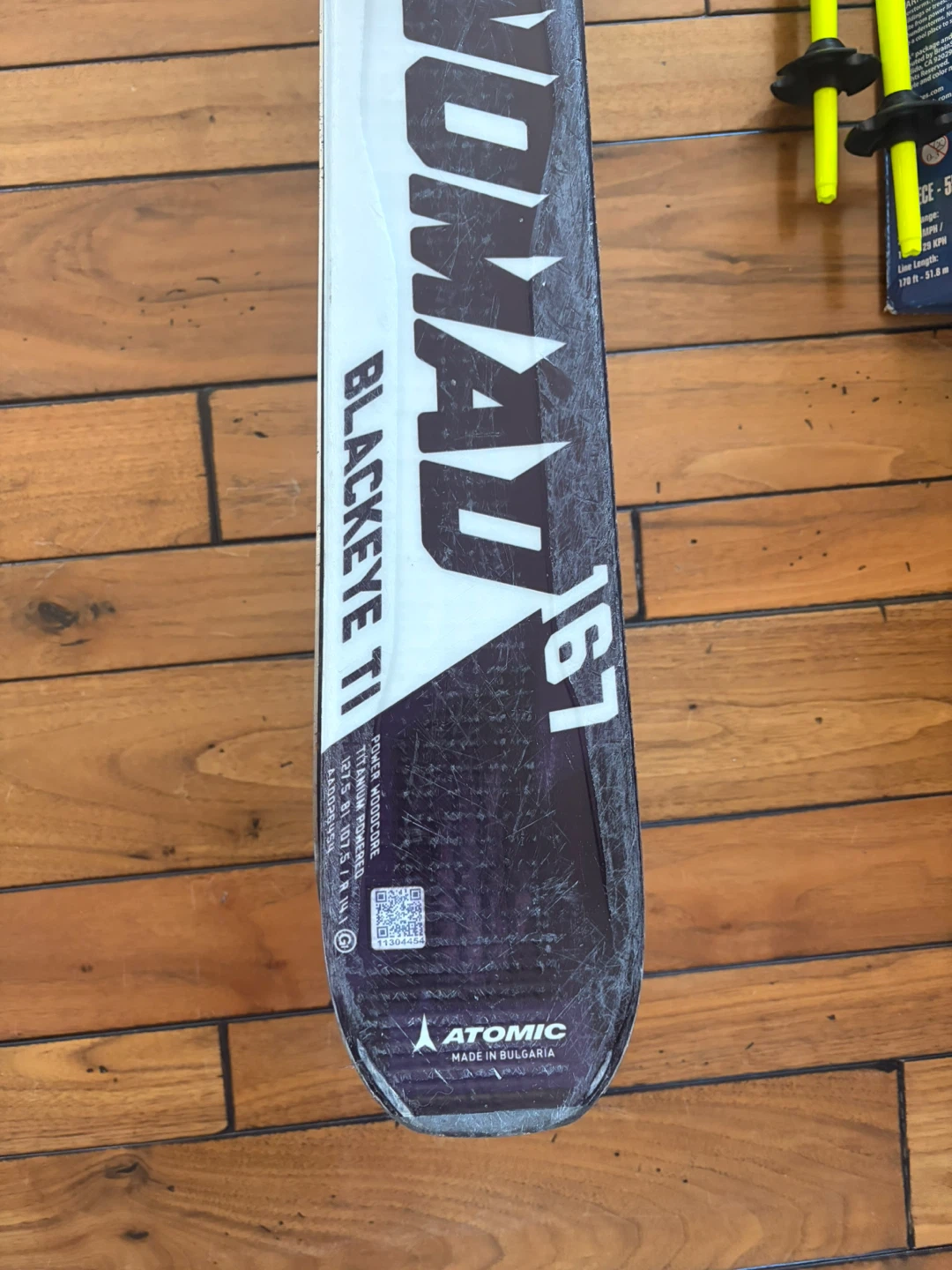 Atomic Nomad Blackeye TI all-mountain skis. These skis are 167cm in length and feature a titanium power wood core.