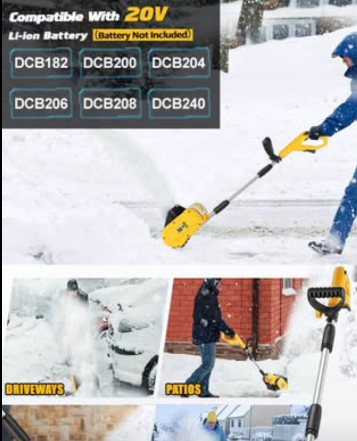 Cordless Snow Shovel Compatible for DeWALT 20V Battery(No Battery), Electric Snow Blower for Driveway with Telescopic Pole, 10in Width, 6in Depth, 20ft Throwing Distance