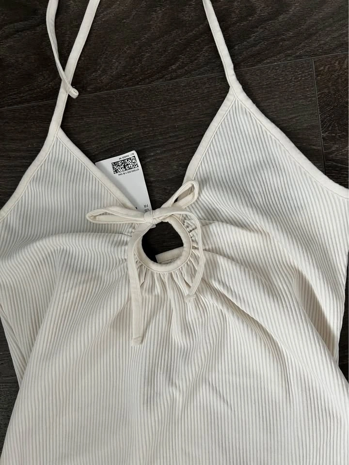 Cream Ribbed Halter Neck Mini Dress M BRAND NEW WITH TAG