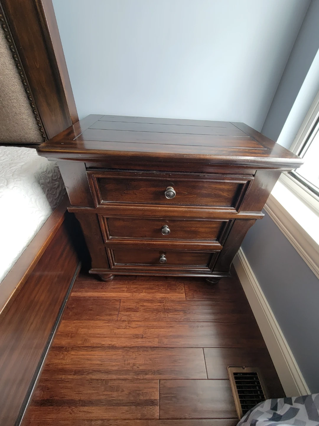 Dark Wood Bedroom Set - Bed Frame, Dresser, and Nightstands