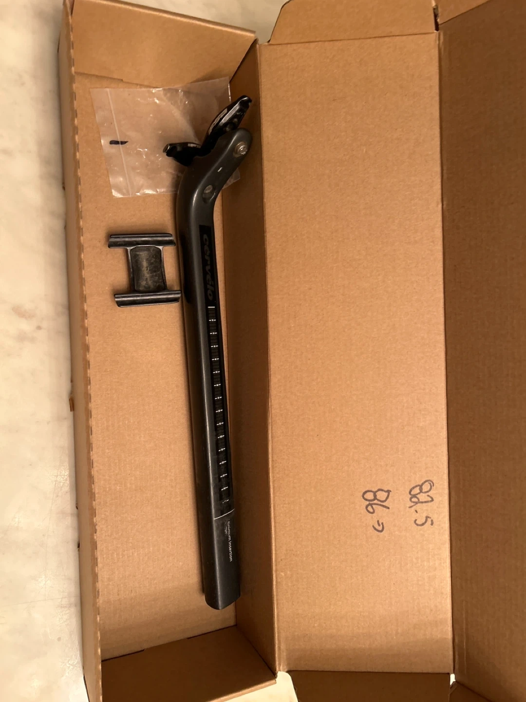 Selling a Cervelo bike seatpost! It comes with the original box and all the pictured components. Let me know if you're interested!