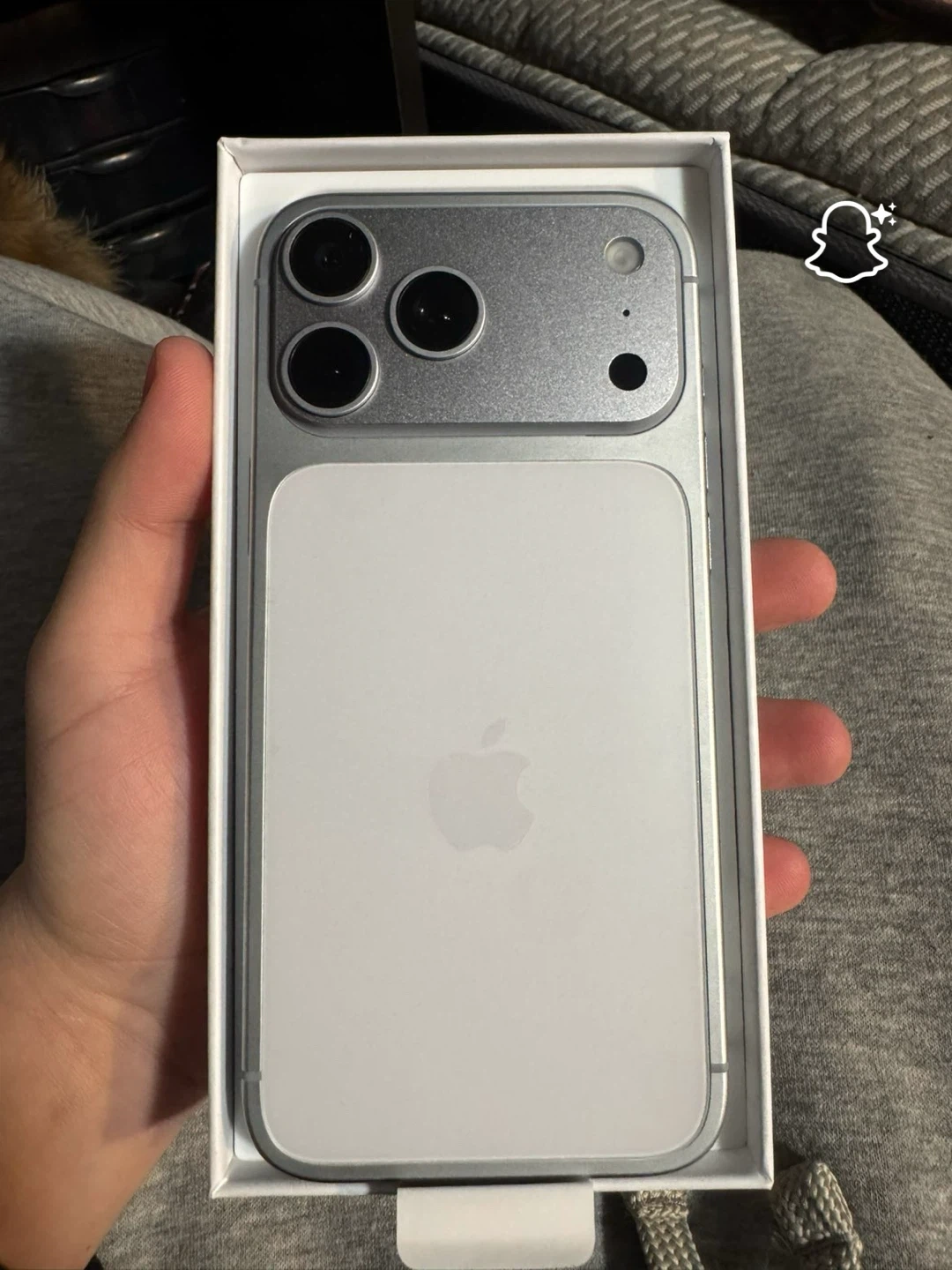 Got this new iPhone 17 Pro Max in silver. It comes with the original box and all the standard accessories. It's been opened but not really used.