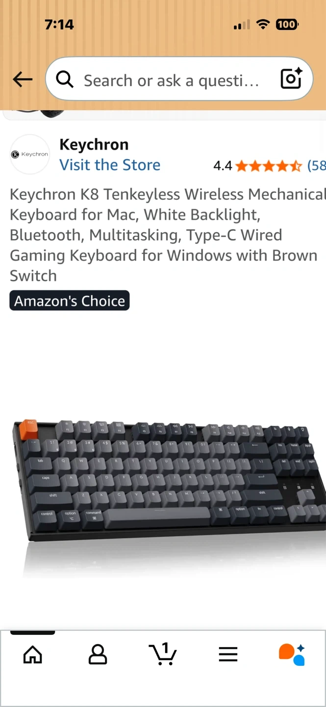 Keychron K8 Tenkeyless Wireless Mechanical Keyboard for Mac, White Backlight, Bluetooth, Multitasking, Type-C Wired Gaming Keyboard for Windows with Brown Switch. Wireless and Wired connectivity options available.