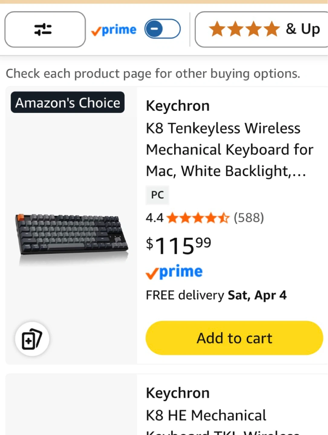 Keychron K8 Tenkeyless Wireless Mechanical Keyboard for Mac, White Backlight, Bluetooth, Multitasking, Type-C Wired Gaming Keyboard for Windows with Brown Switch. Wireless and Wired connectivity options available.