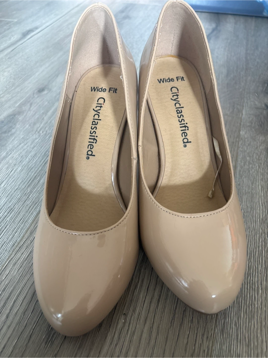 These City Classified pumps are a size 6.5 with a wide fit. These nude-coloured heels are suitable for everyday wear or special occasions.