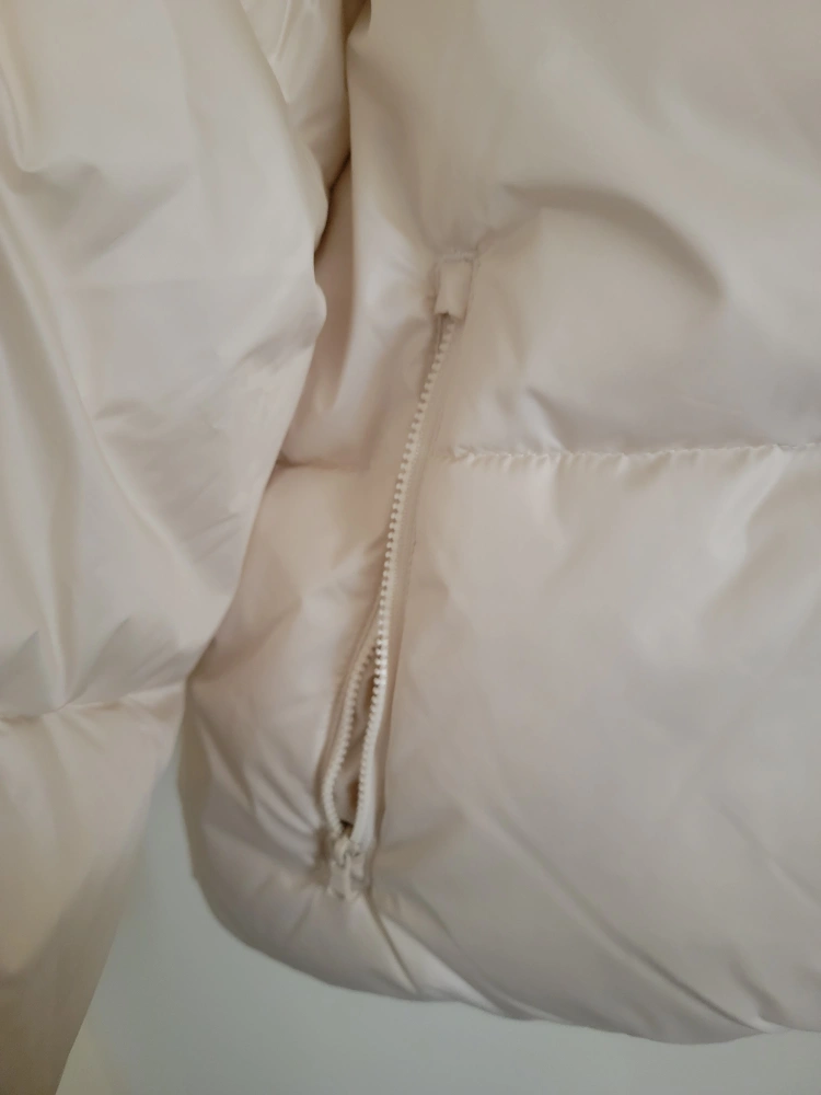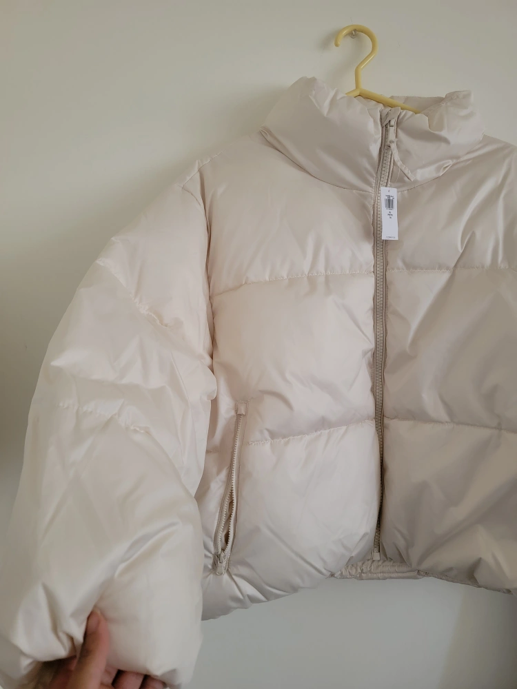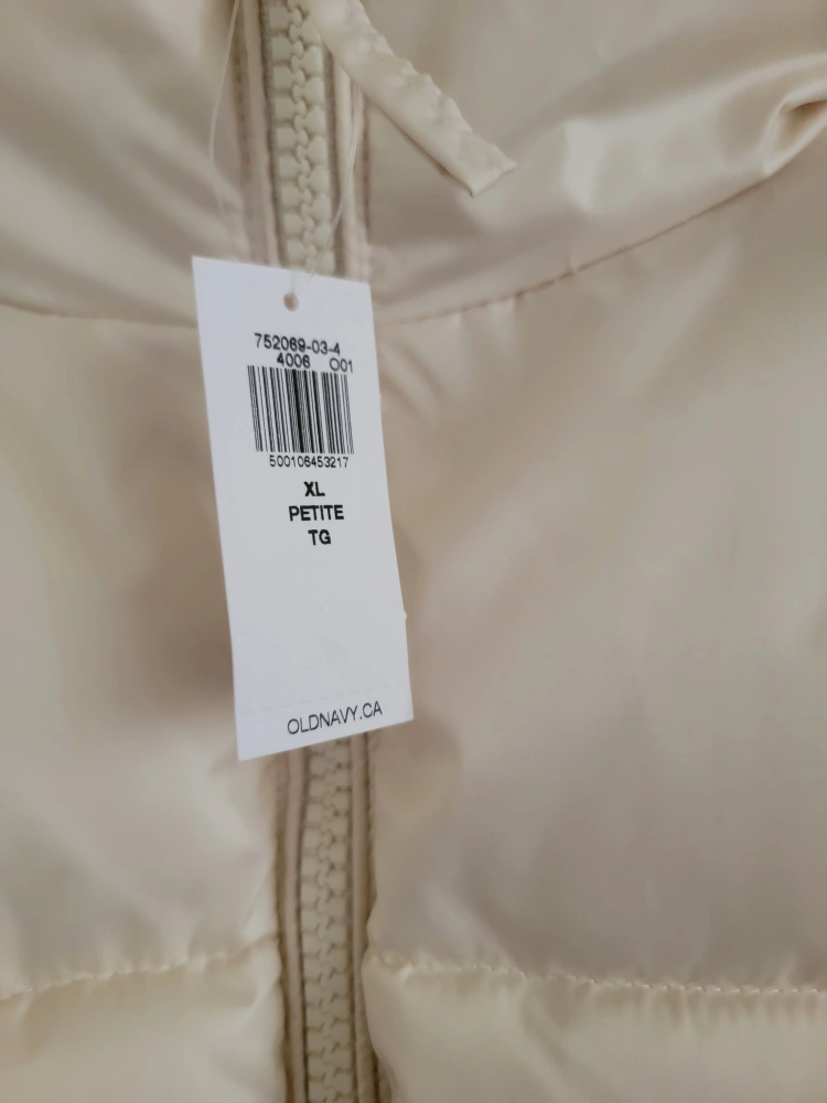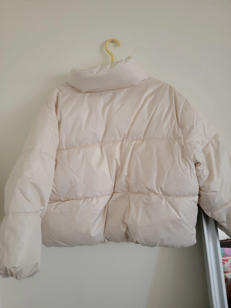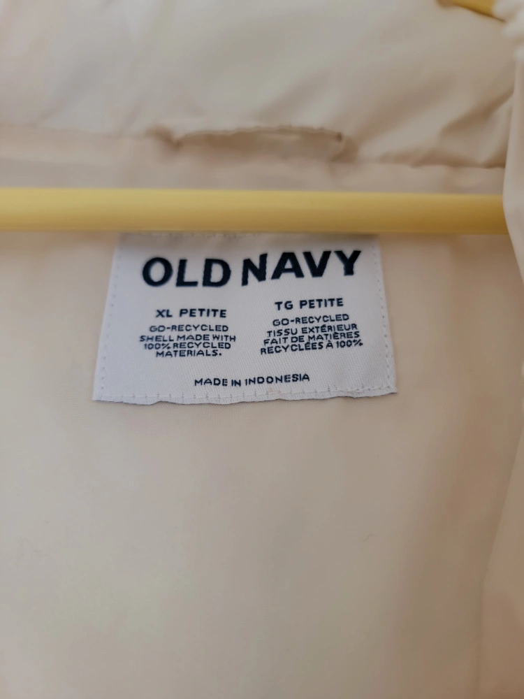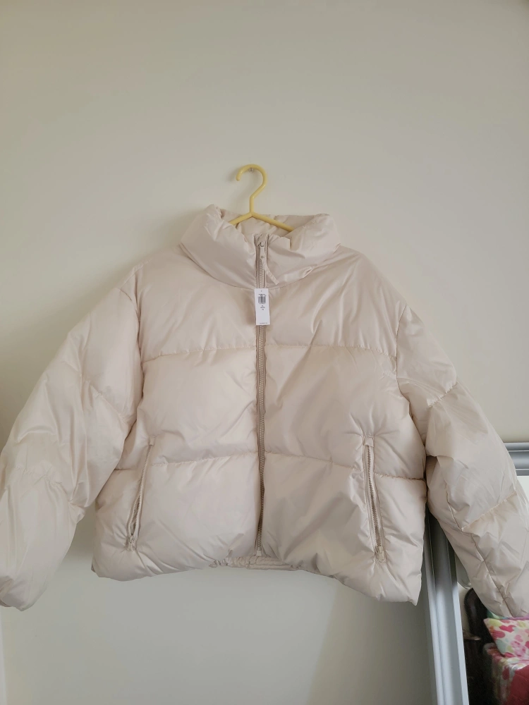 Cream coloured puffer jacket by Old Navy.