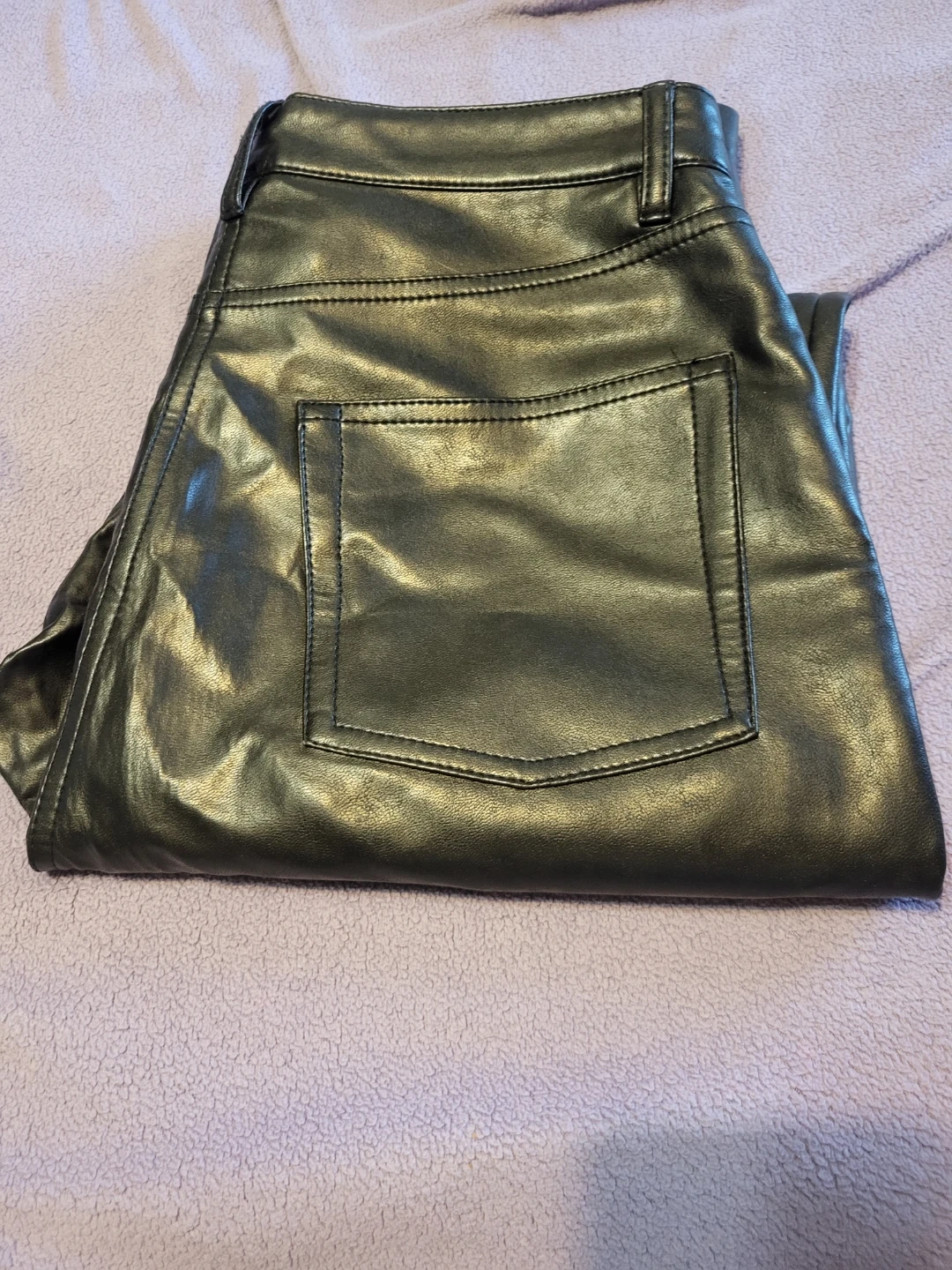 These black faux leather pants are from Wilfred. They're a size 8 The material looks like faux leather.