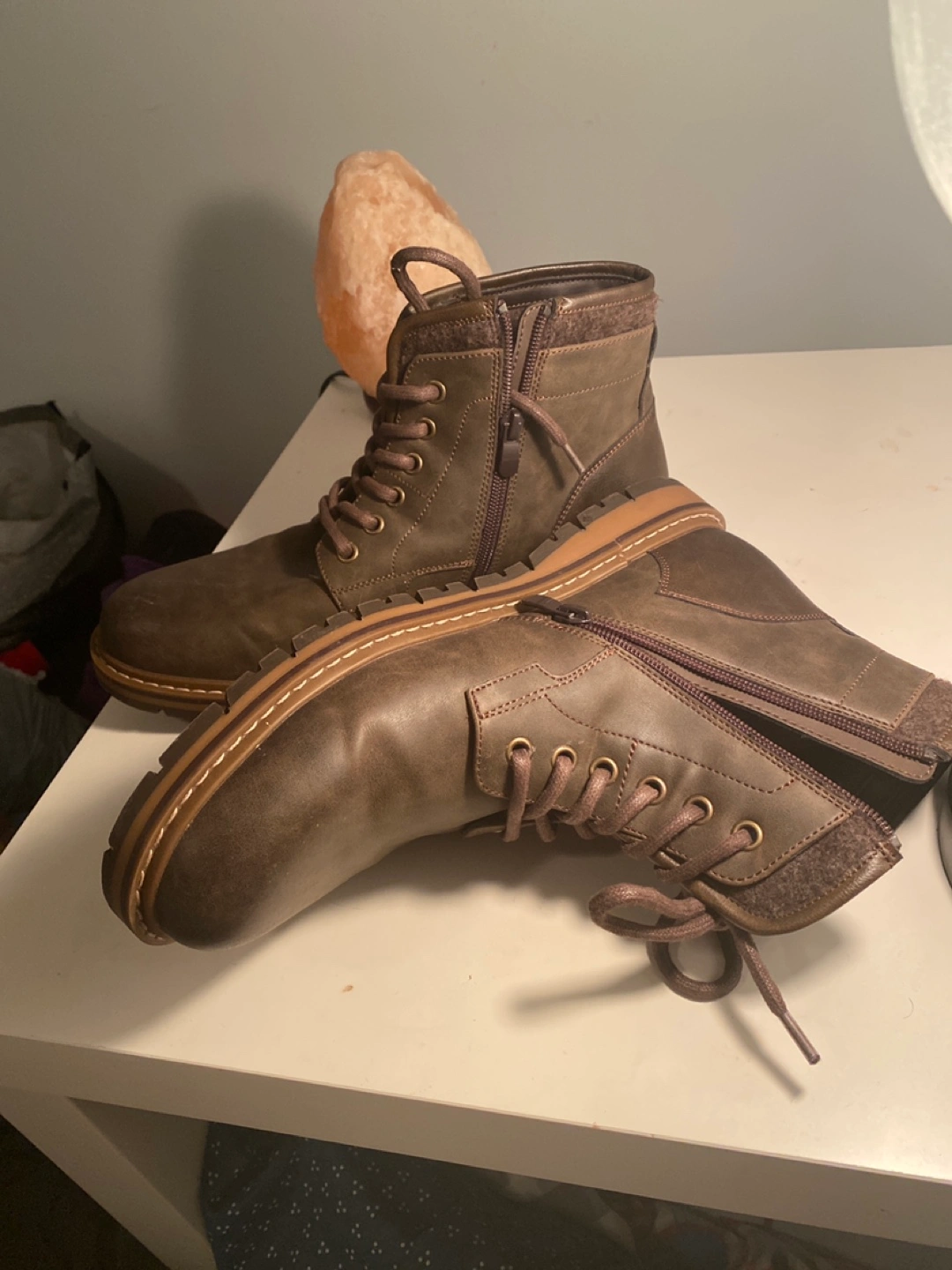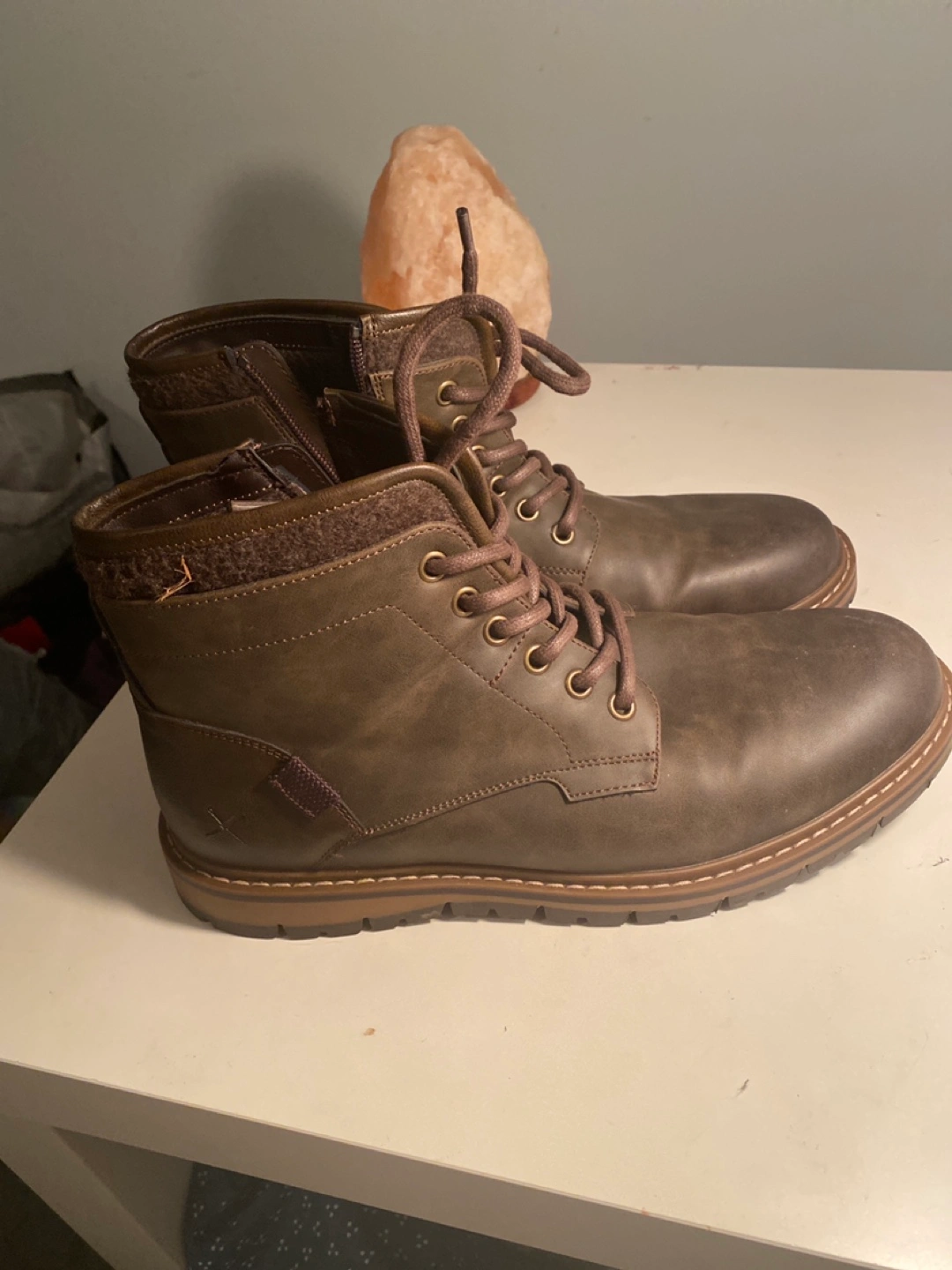 Selling a pair of men's ankle boots in a stylish brown colour. They appear to be in good condition and are a size 10. Perfect for everyday wear!