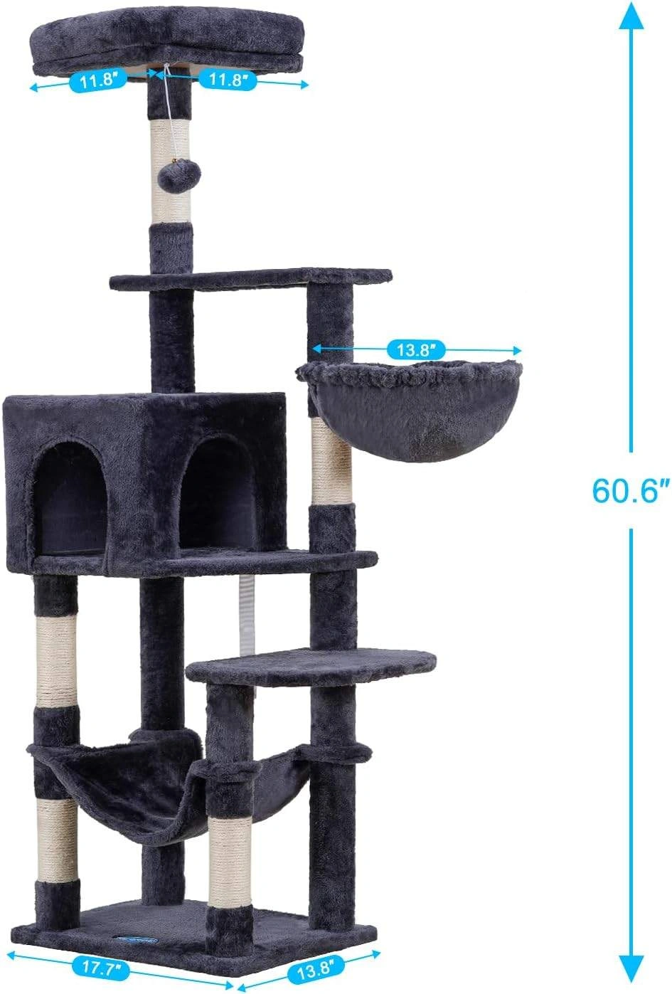 This multi-level cat tree is perfect for your feline friends! It features several platforms, a cozy condo, and a hammock for lounging. Your cats will love climbing, scratching, and playing on this tree. It measures 60.6 inches in height, providing ample space for your cats to explore and enjoy.
