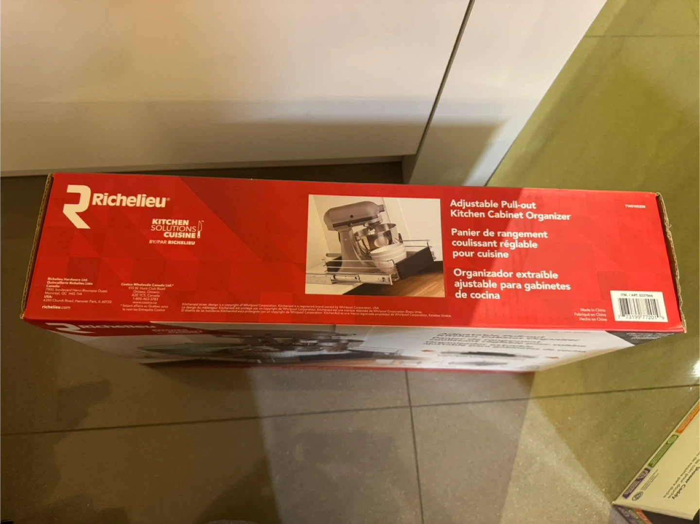 Richelieu adjustable pull-out kitchen cabinet organizer. Brand new in box.