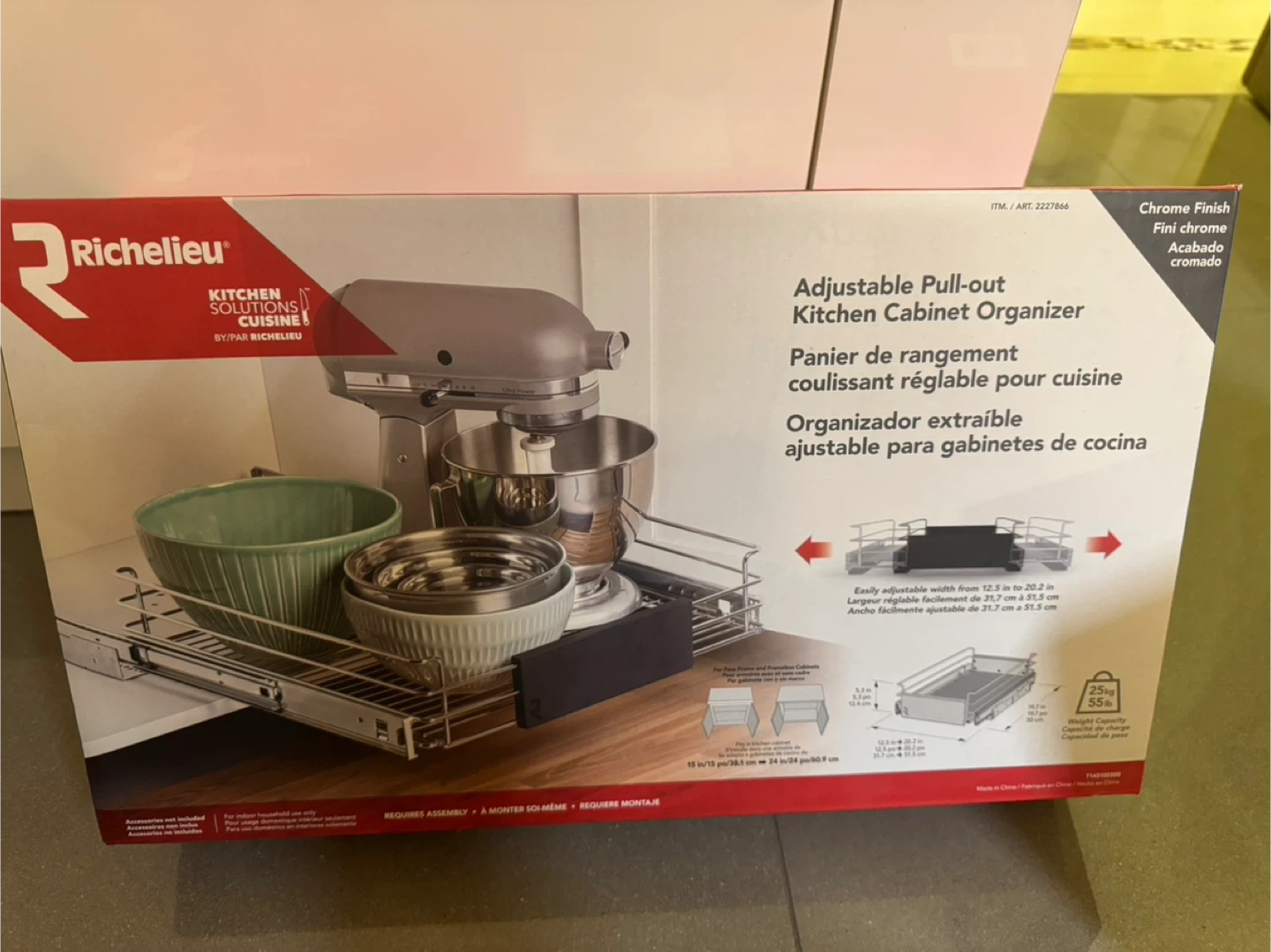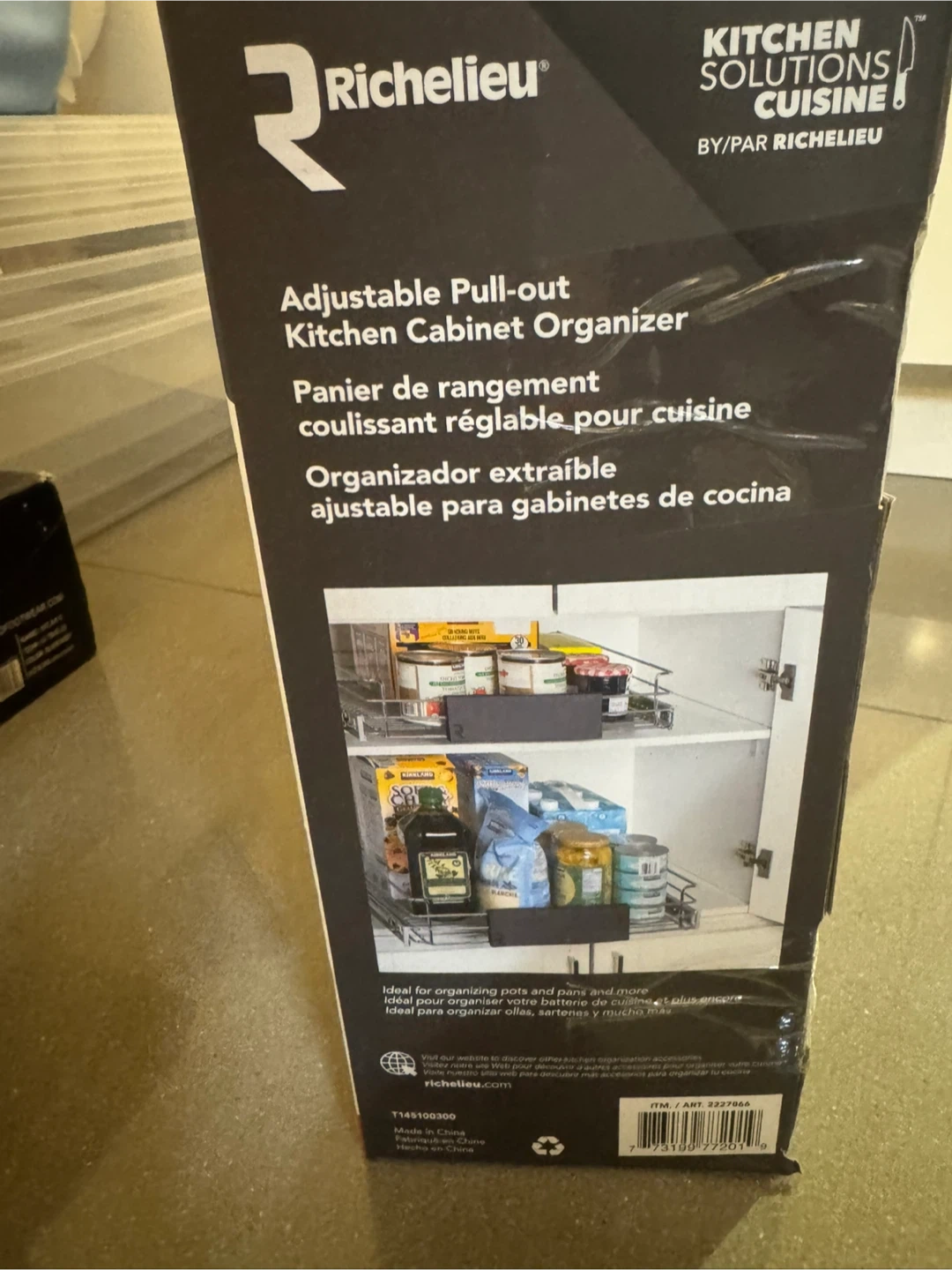Richelieu adjustable pull-out kitchen cabinet organizer. Brand new in box.