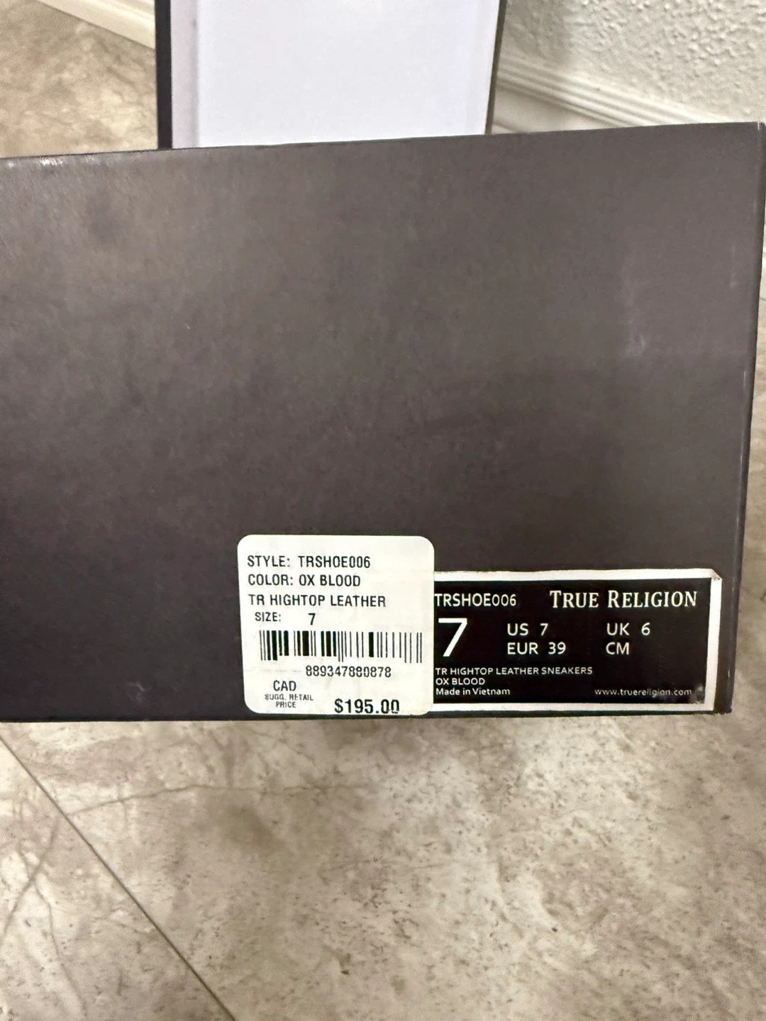 True Religion TR High Top Leather Sneakers - Ox Blood - Size 7