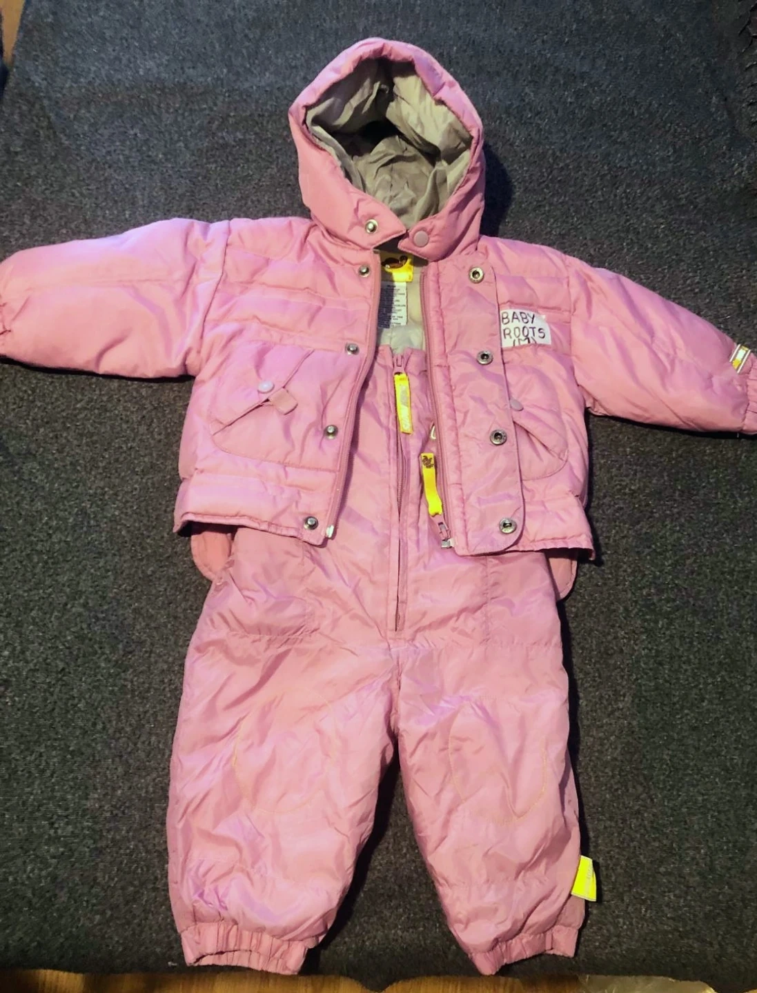 A super cute and warm pink snowsuit set from Baby Roots! Perfect for keeping your little one cozy during the winter months. The set includes a jacket and snow pants. It's in great condition and ready for a new adventure! Size 6 months.