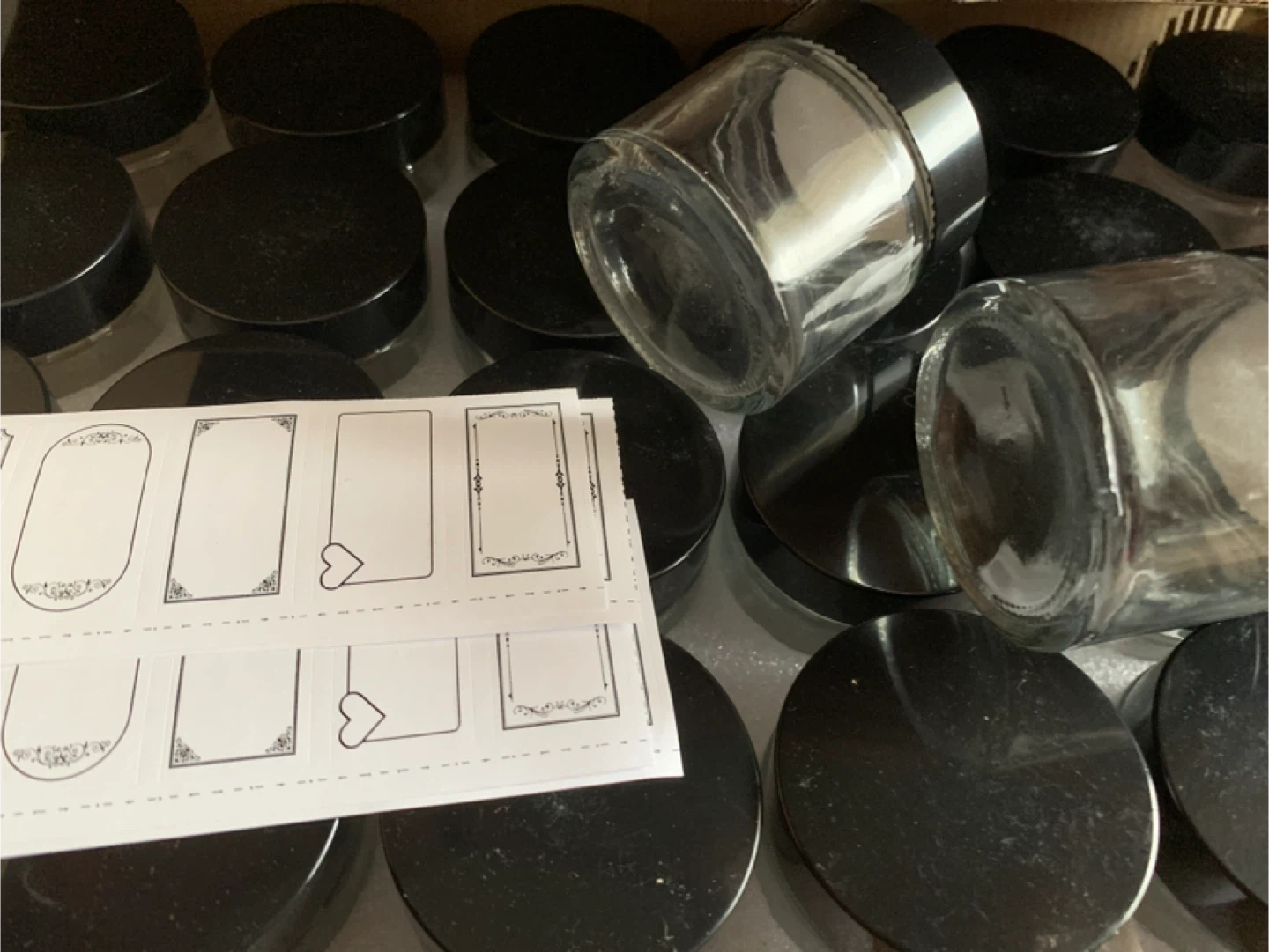 Small Glass Jars with Black Lids and Labels