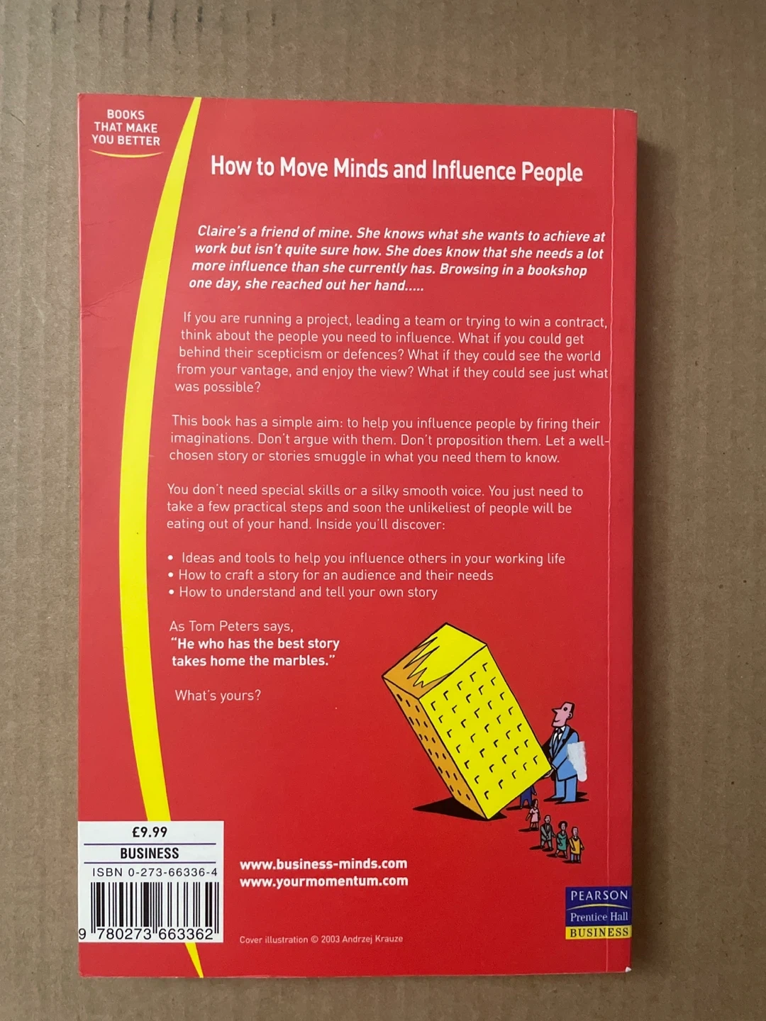This book offers ideas and tools to help you influence others in your working life. It covers how to craft a story for an audience and their needs, and how to understand and tell your own story. It's written by Iain Carruthers and published by Pearson Business.