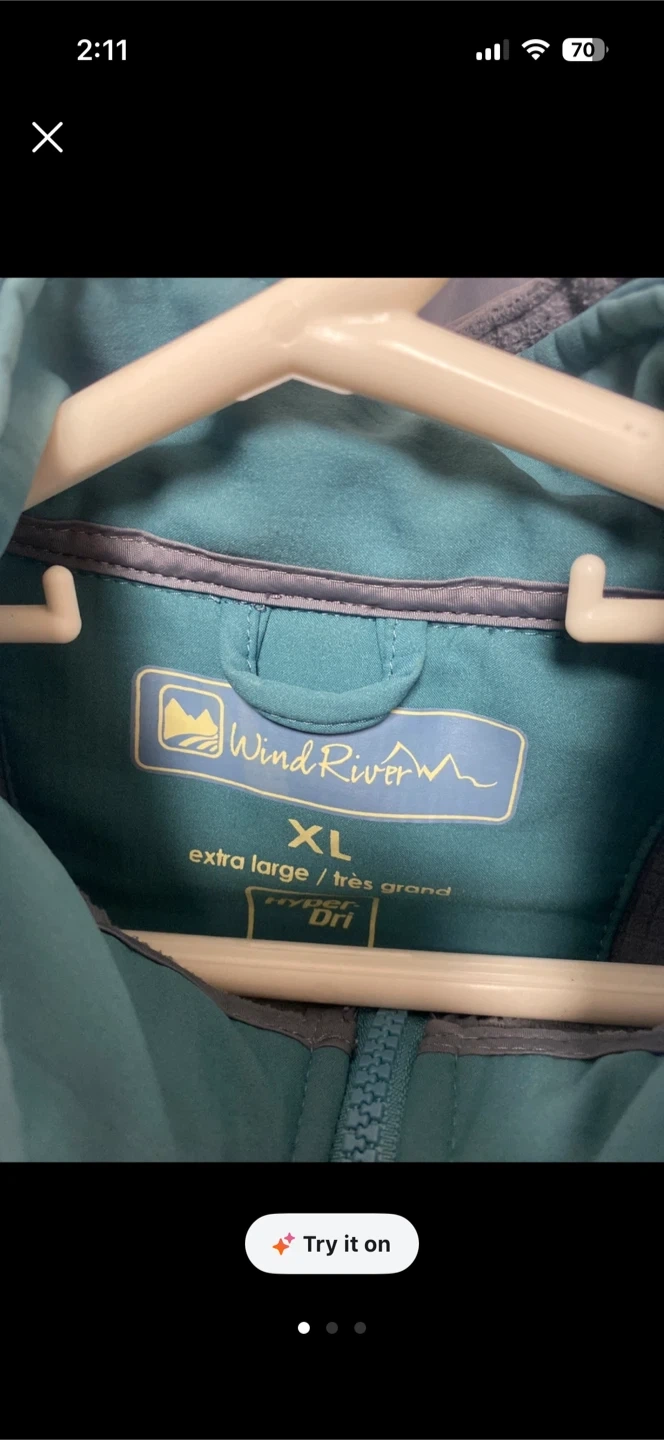 Wind River ski jacket in extra large. It's a waterproof and breathable coat, perfect for cold weather activities. This jacket has a hood and multiple pockets. Size X-Large pick up cash only
