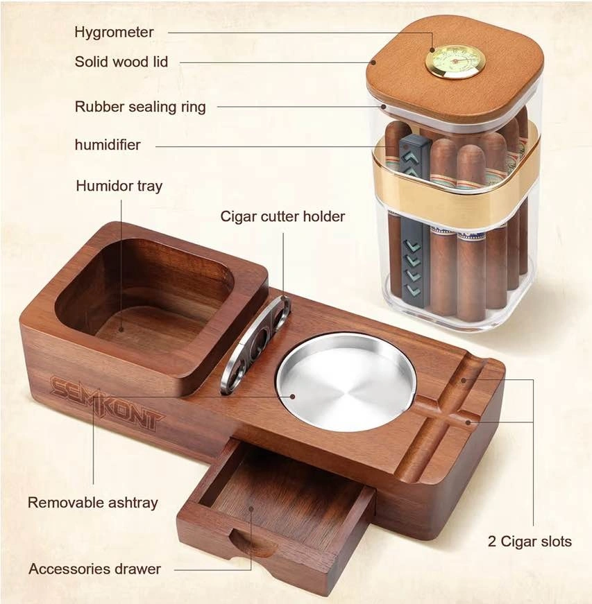 Great gift set for the cigar aficionado in your life. New, unused in box. Brown square model. See pictures for more details. Sells for $99+tax on Amazon.